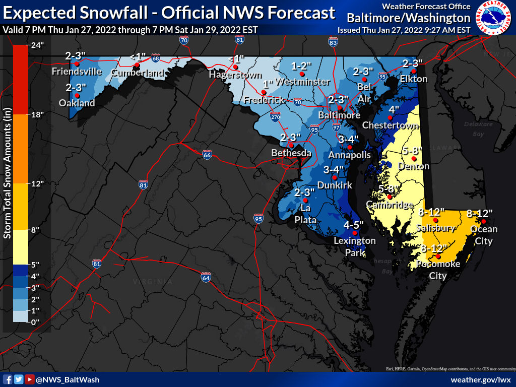 We’ve had a pretty decent weather week for fishing with 3 or so fishable days out of seven, but that’s all about to change drastically.  The east coast is currently preparing for a major winter storm and right now the forecast is for huge impacts in and around Ocean City.  The forecast is calling for the storm to move into the area tomorrow evening and blast us from sometime after 6 PM Friday until late Saturday evening.  The National Weather Service has us looking at 25 – 35 MPH winds with gusts possible over 40 MPH and snowfall totals from 8-12 inches….with the possibility of over 12 inches.  That’s major for our area so not only will there not be any fishing going on through the weekend, some businesses will likely close due to the weather and travel is not going to be recommended unless it’s an emergency.   I’ll be sitting around the house cleaning reels and practicing my knots.  (video below). We’ll also be doing a snowfall guess giveaway on our Facebook page so check that out!