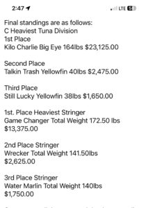 Captain Willie Zimmerman of the RoShamBo had a nice day in the canyon before the wind started later in the day. Captain Willie’s crew had some nice yellowfin tuna lined up at The Ocean City Fishing Center.