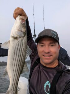 Blake Gunther had some fun in the OC inlet this morning with the schoolie stripers and then added two keeper flounder up to 20″.