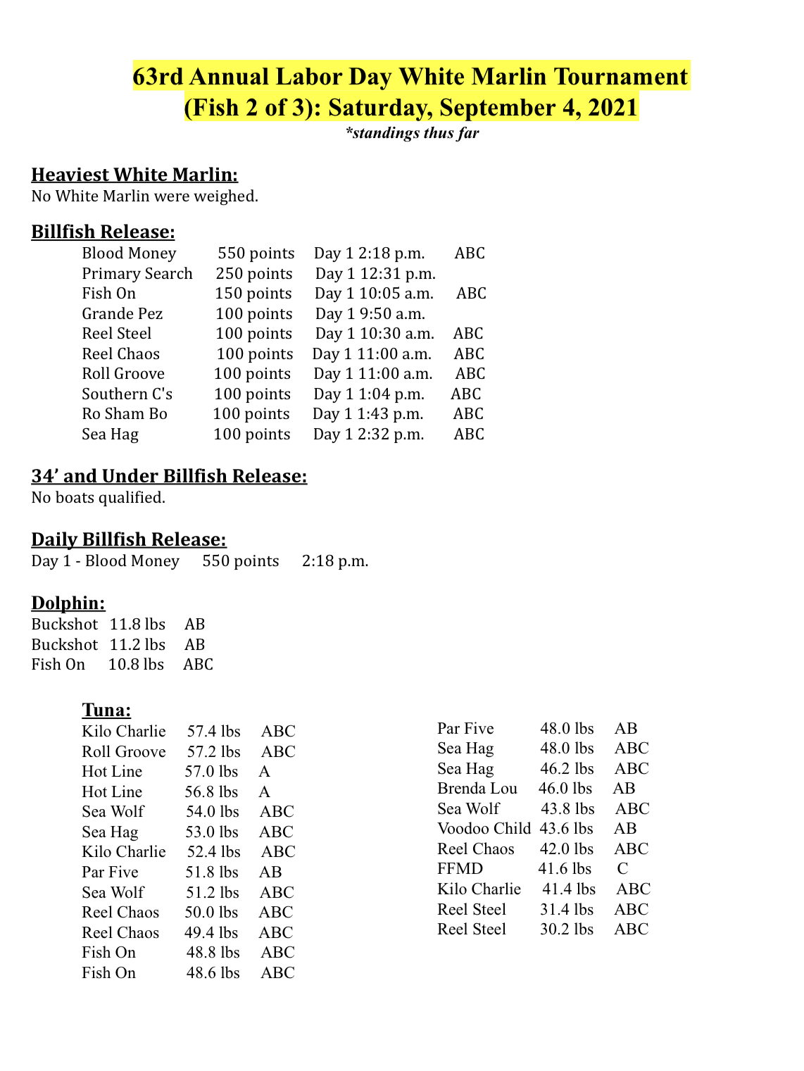 We do a split $20 pool. Half to the heaviest announced species (sea bass only today) & half to the Morning Star daily 50/50 Reef Raffle (which I’ve been doing since late 1990s.) Built a lot of reef with it.