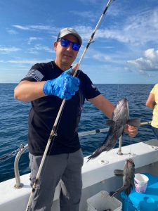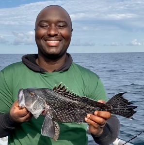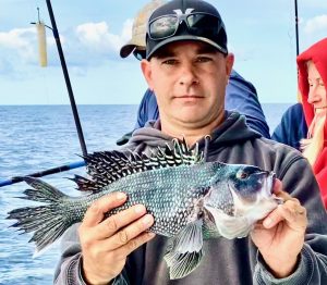Captain Monty Hawkins of the Morning Star was glad to get back on the ocean today and so were his clients. They had a very good day of fishing sea bass and mahi.