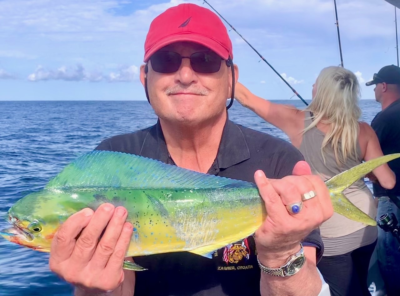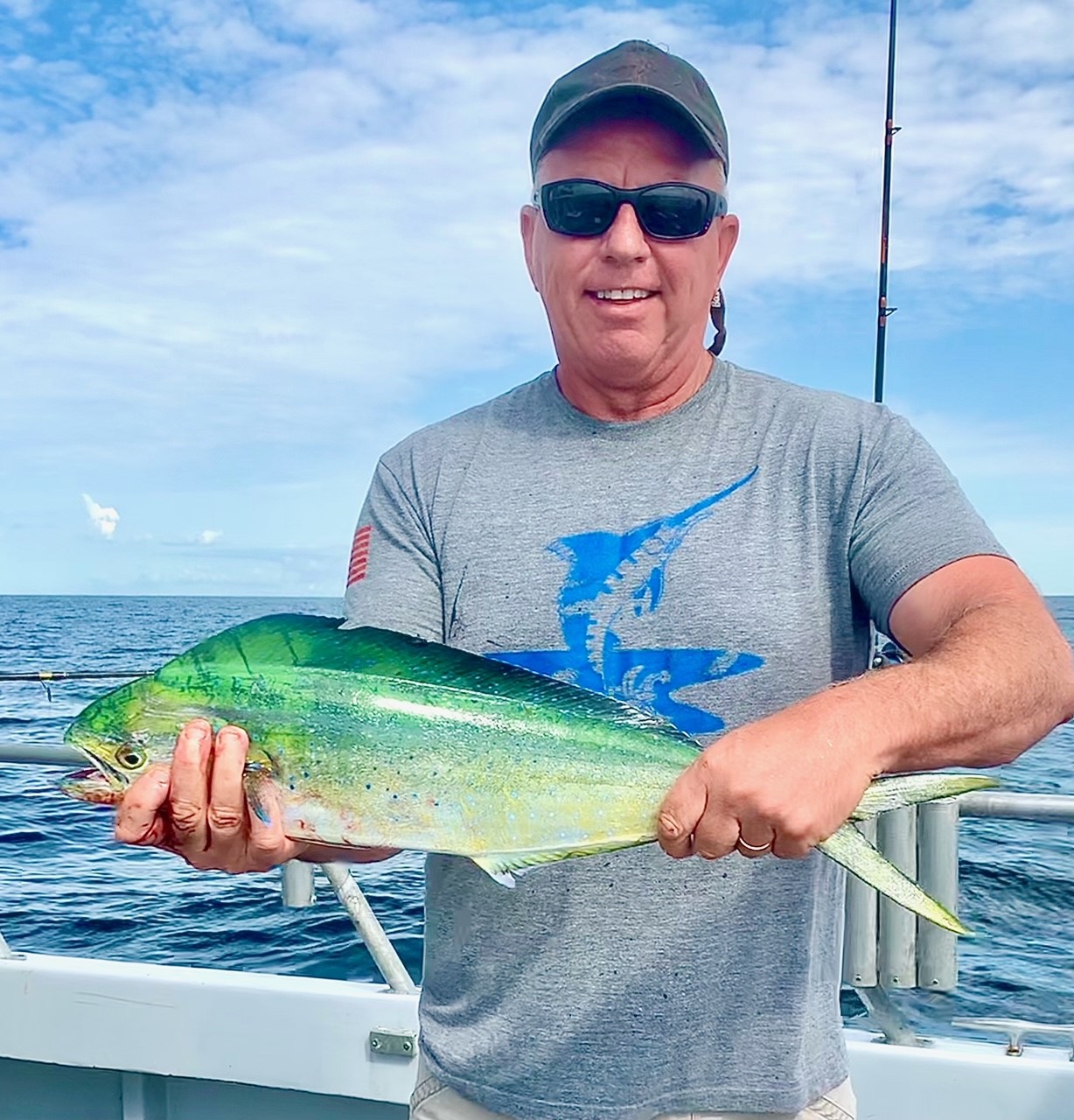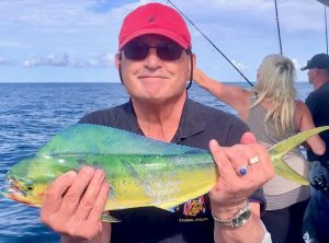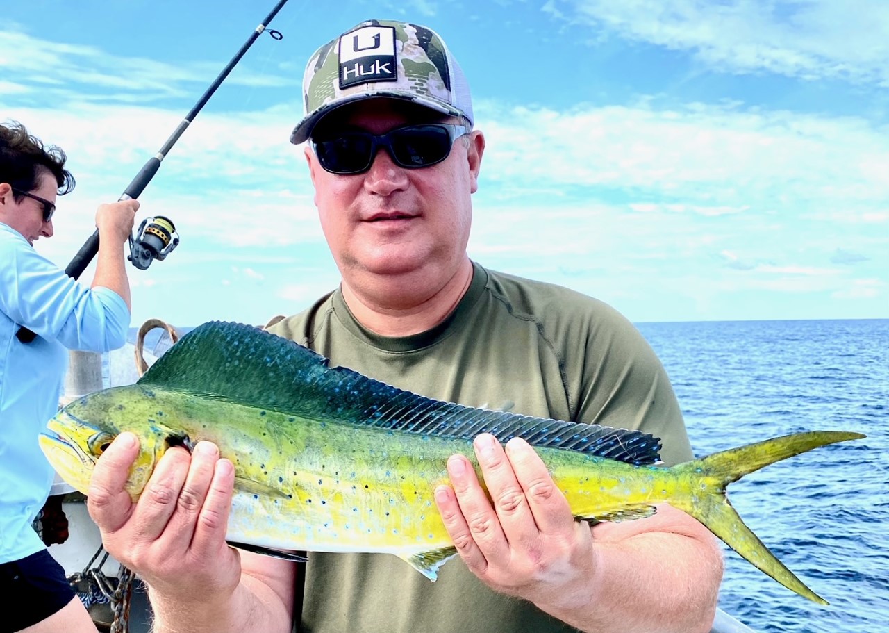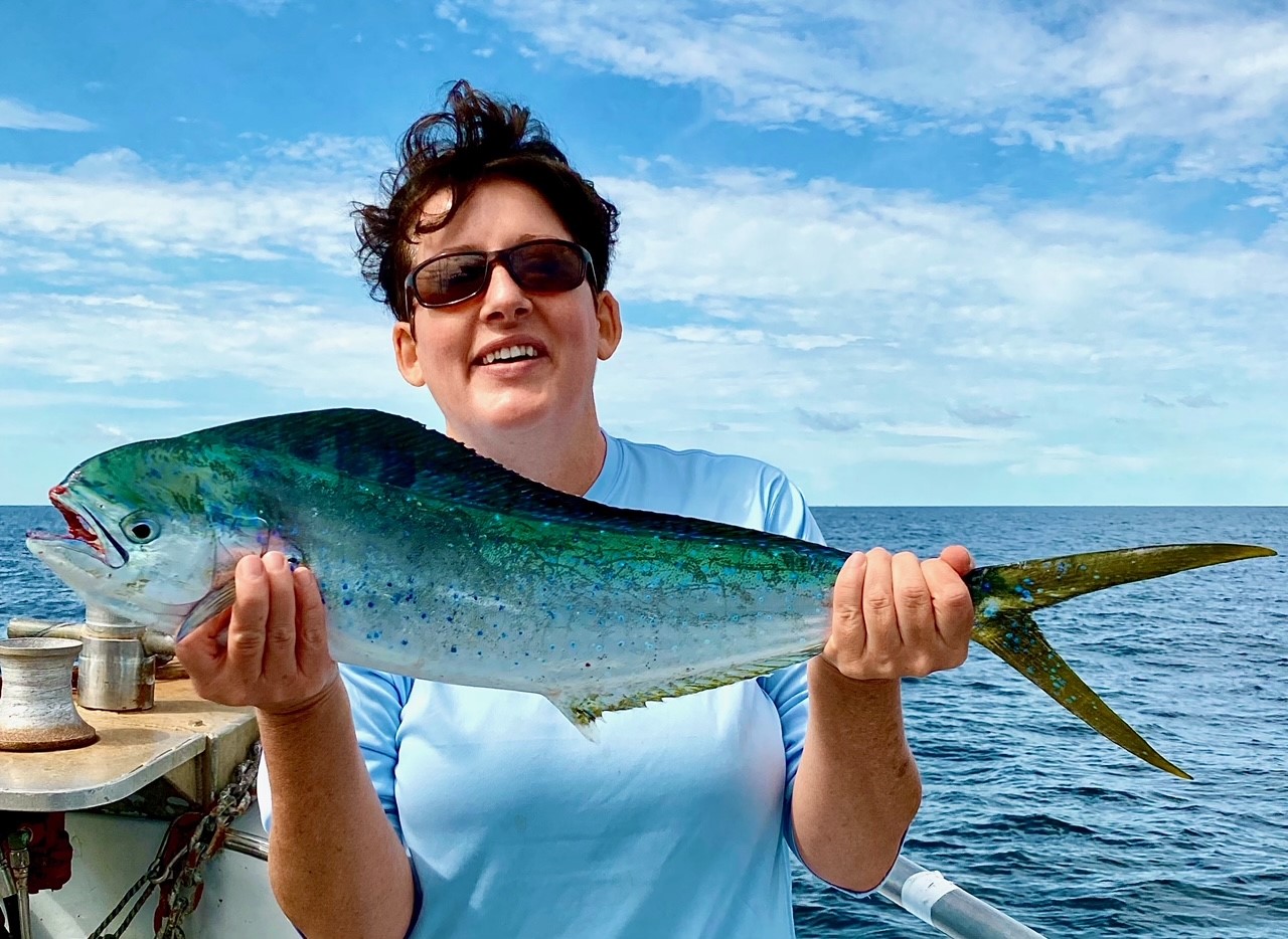 Though apprehensive of post tropic catching, there wasn’t a whole lot to it. Hurricane didn’t roil things too badly at all. Sure dropped the water temp though. And our inshore water is greener. The mahi we caught were wearing sweaters.