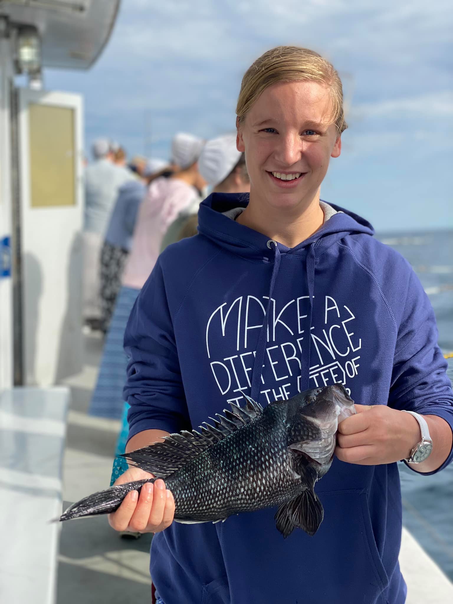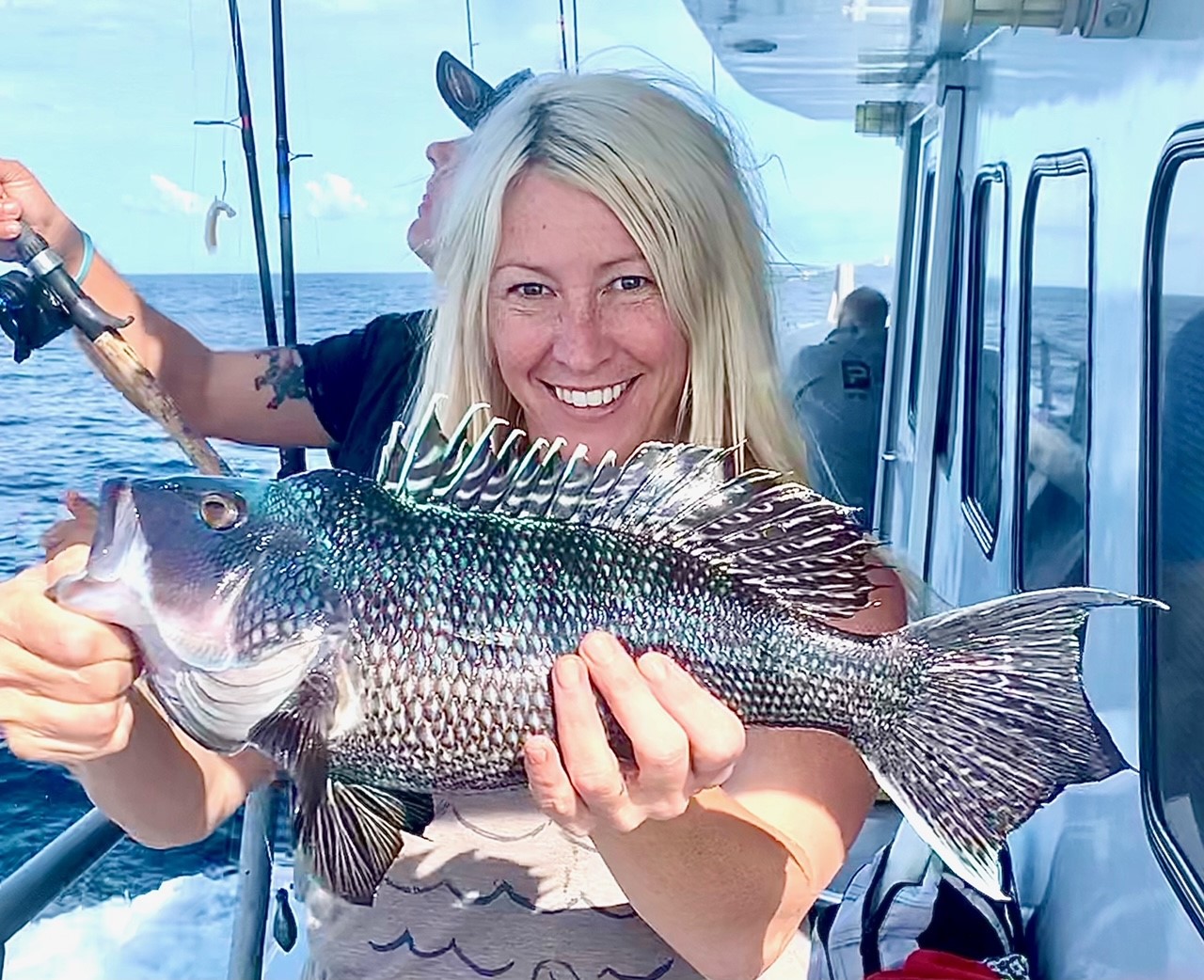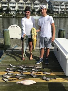 Carson and Caroline Gebhard had a great day fishing at the Great Eastern Reef when they boxed a flounder, some mahi and a pile of sea bass. Some of the fat sea bass were caught on the Fish in OC Deadly Double.
