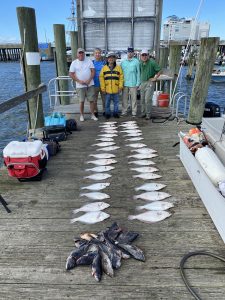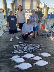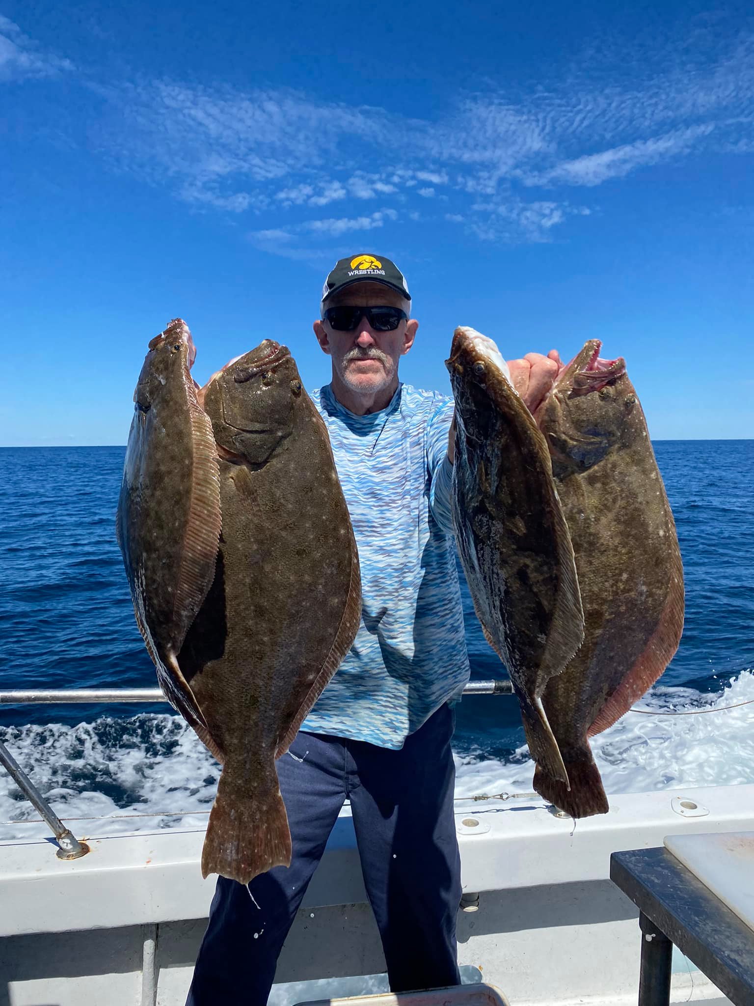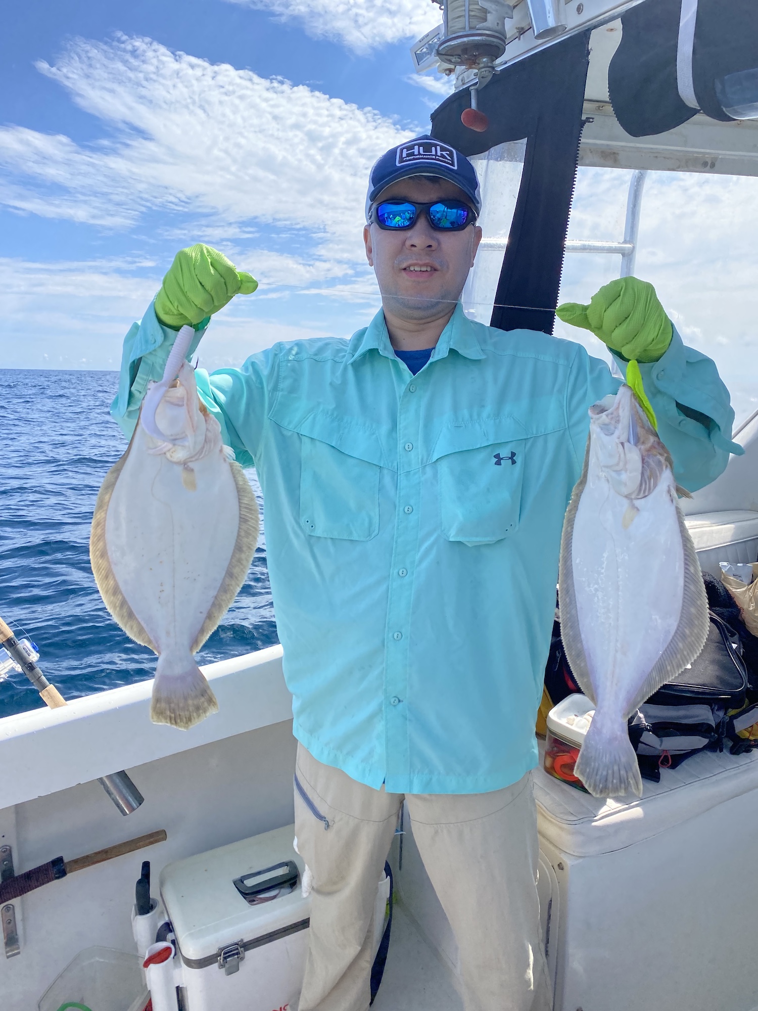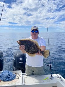 Captain Chris Mizurak of the Angler reported a “nice one” today that meant his customers caught sea bass, mahi and some big flounder up to 5 pounds.