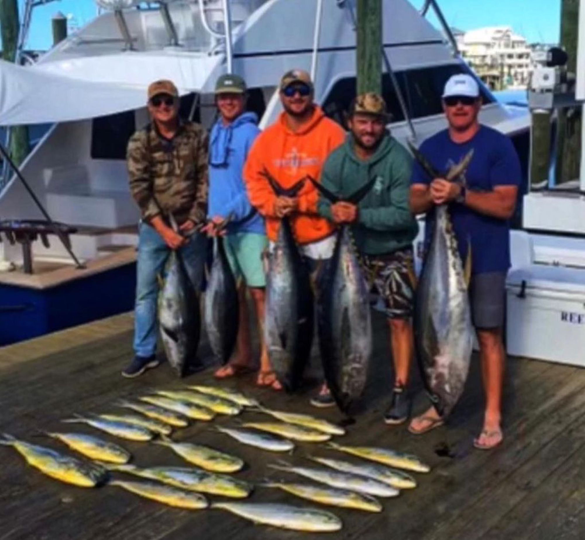 The crew fishing on board Boss Hogg out of Sunset Marina had a good day of fishing today as well and put some yellowfin tuna and a pile of mahi in the boat.