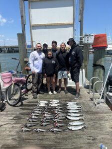 Captain Chase Eberle of Chasin’ Tides Charters had a good day of inshore ocean fishing today putting his clients on some bonita, some bluefish and a pile of sea bass.