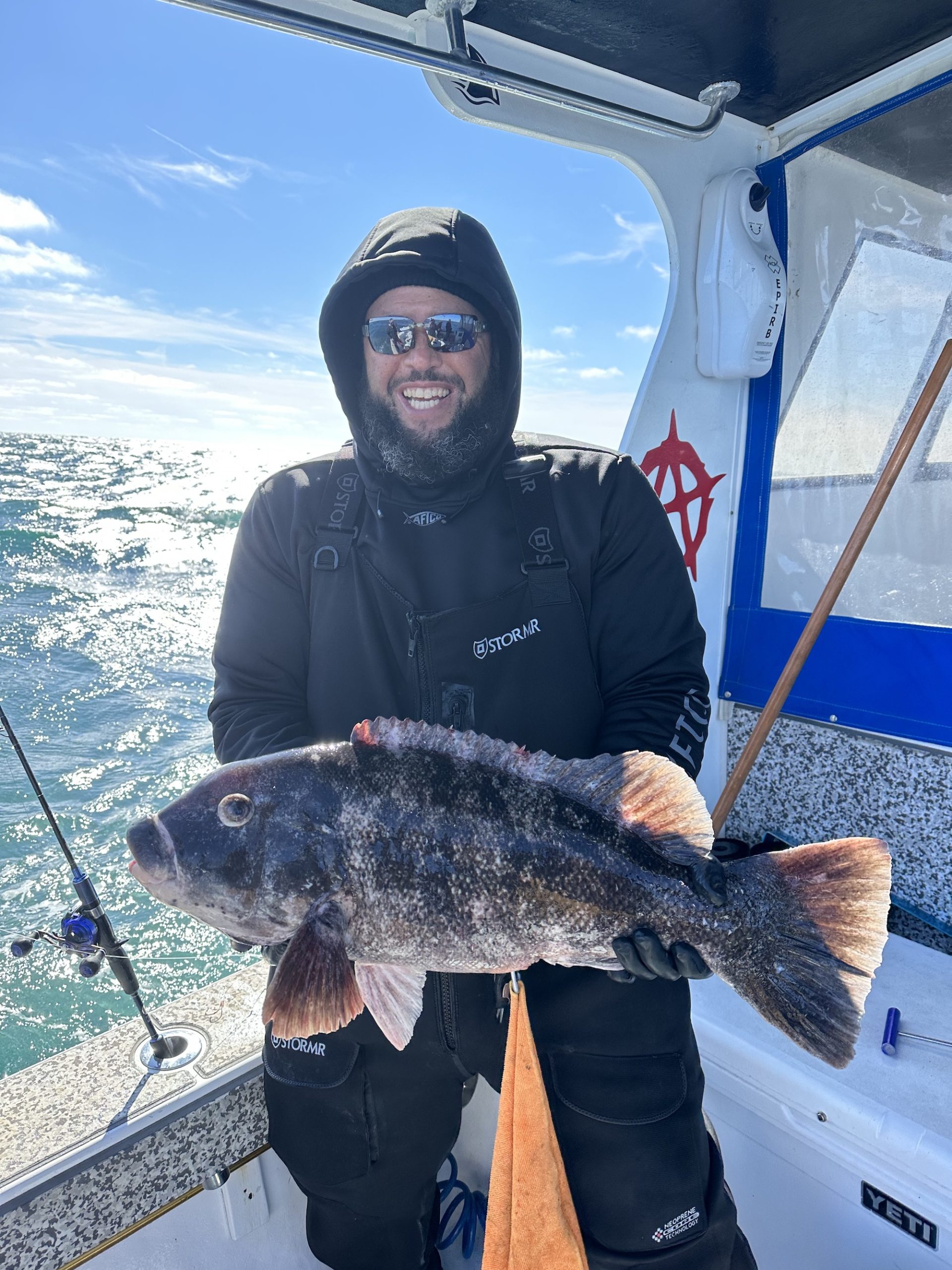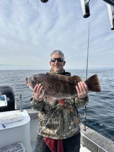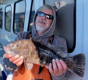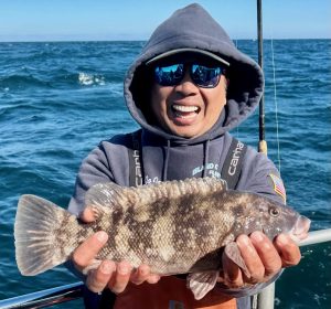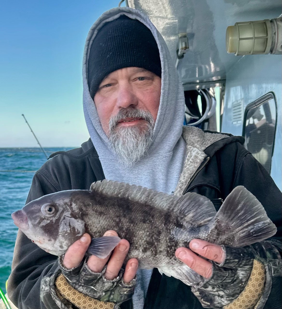 Captain Chase Eberle of Chasin’ Tides Charters didn’t have an incredible day overall, but he did manage some great fish for his crew. Not a ton of action with just 8 keepers going in the box, but there were five very impressive fish over 10 pounds. The five double digit tautog or “DD’s” were 12.5, 13, 13.5, 14 and 17.5. Awesome fish! They knocked one lucky angler out cold!