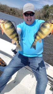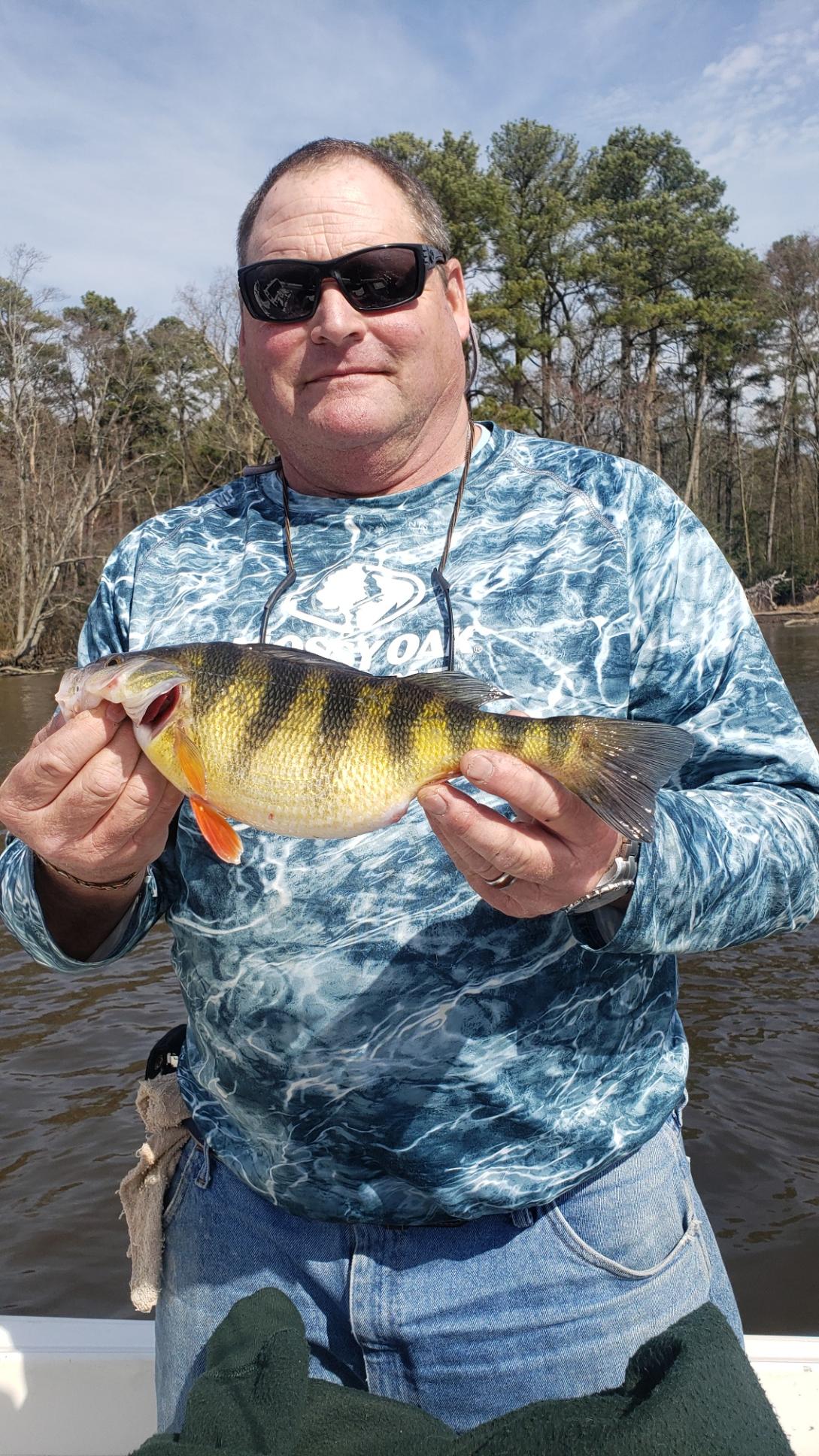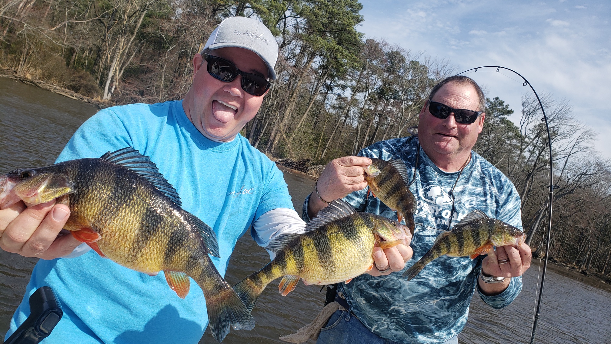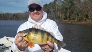 I had the pleasure of fishing with my long time friend Eric Sexton today over on a “tributary of the Chesapeake Bay” and we had an absolute blast.  The yellow perch were biting as soon as we dropped our baits in and there were some big fish in the mix.  Live minnows on top and bottom rigs on the incoming tide was the ticket.  We had some quality fish and ended up with about 12 in the box after just a few hours.  It should be a great new episode of Hooked on OC in a couple of weeks.  Thanks to Dave Messick for the pics!