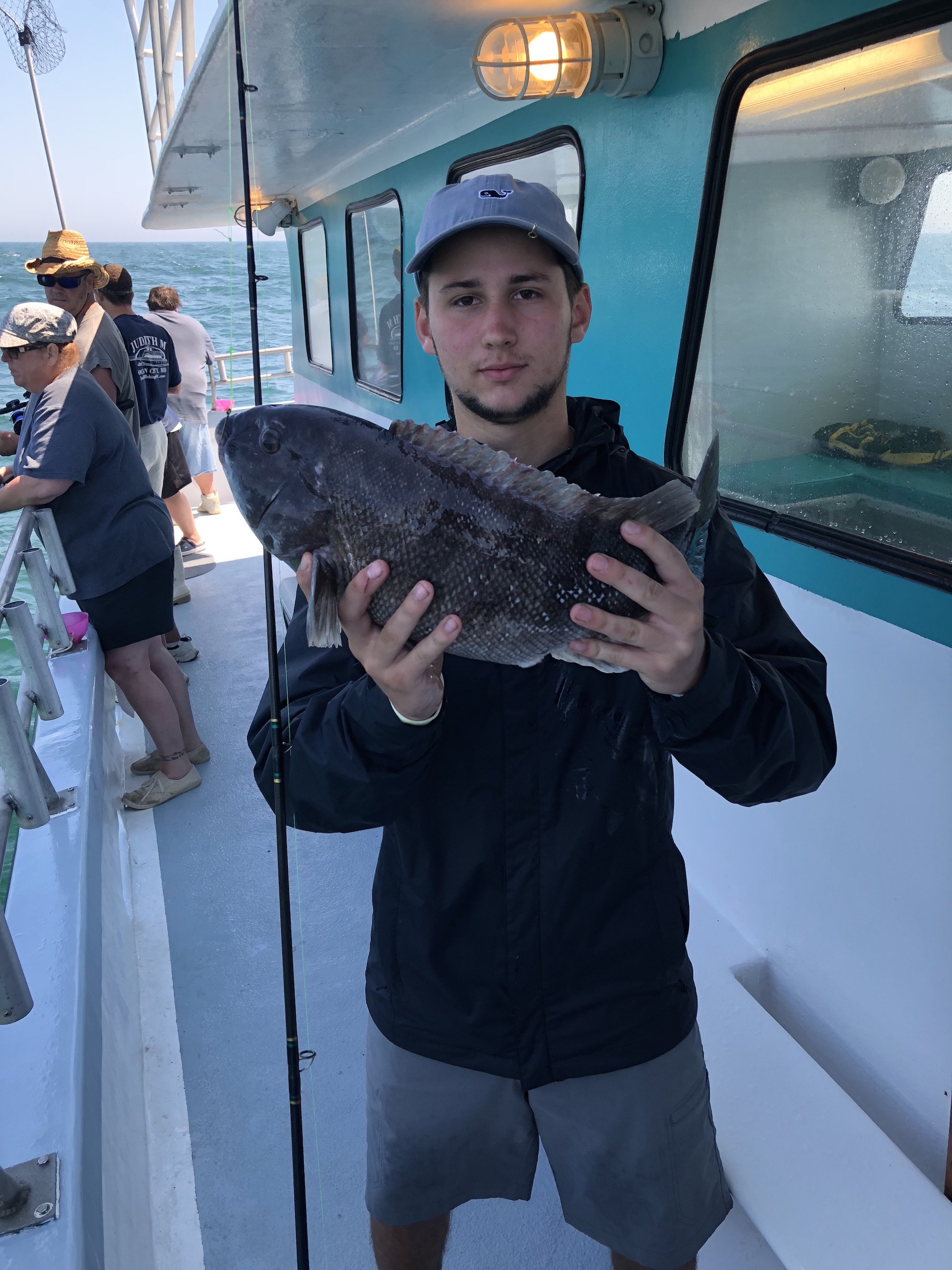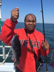 The Judith M with Captain John Bunting has been having a good weekend of bottom fishing out of Bahia Marina. Seven year old Casey (and Carmilita Meadows from Bowie MD) caught and released a 13′ tautog, Dave Omission and Kim Oswald from South Jersey caught some nice sea bass up to two pounds, Adam Flenner, Joppa MD caught and released a big 19 inch tautog, TJ Bunting of Salisbury, MD caught and released a nice sized tautog, Mike Fatem of Laurel, MD caught and released a nice tautog and Avery Harmon of Salisbury, MD also caught and released a nice tautog.