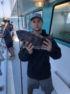 Captain Chris Mizurak on board the party boat Angler reports a pick of sea bass over the past couple of days. There have been some nice fish coming over the rail including this 3 1/4 pounder.