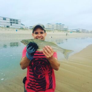Marc Turner caught and released this school sized rockfish on a clam bait in the Ocean City surf this morning.