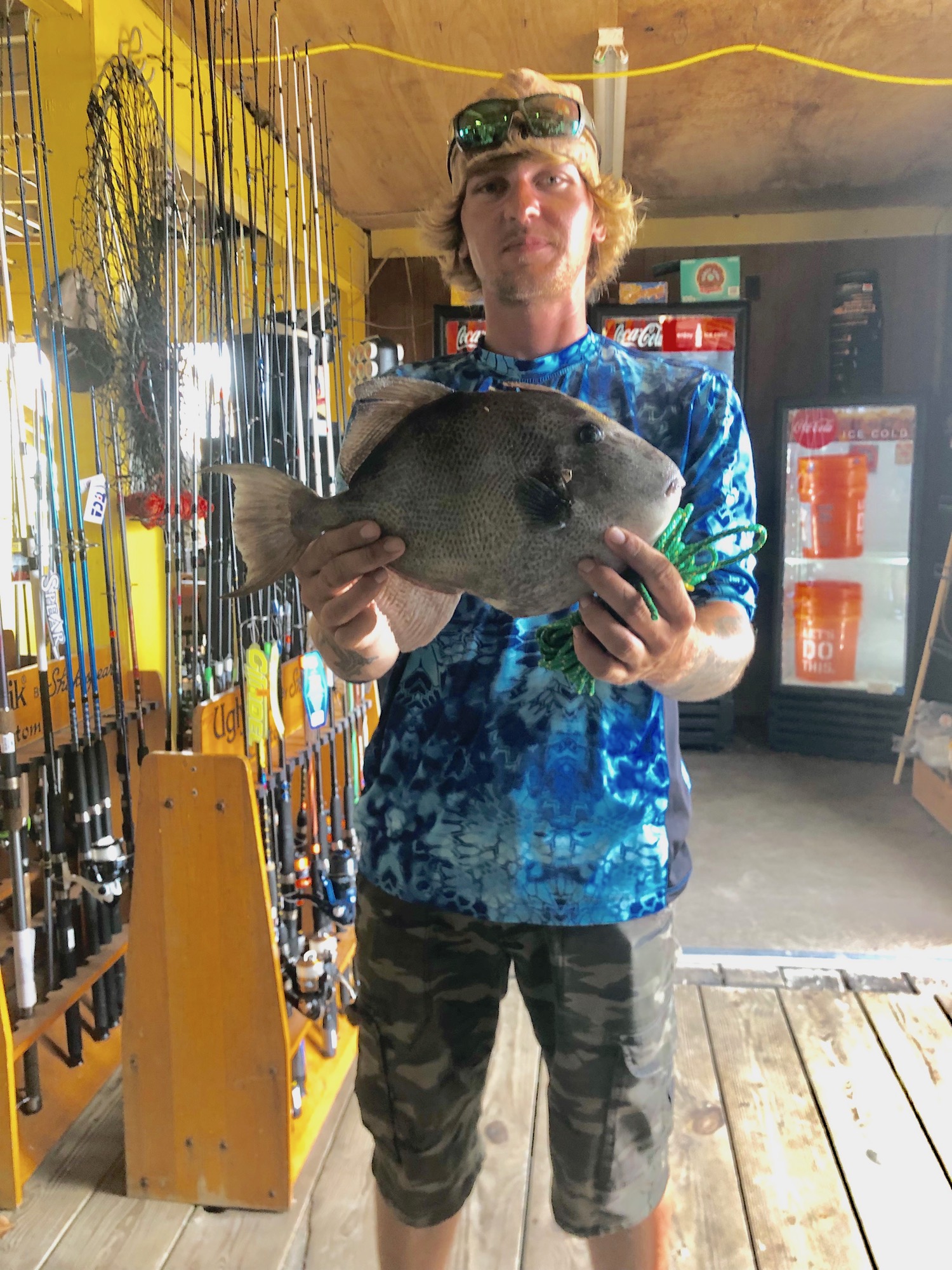 Bear down at the Oceanic Pier sent this photo of Brett who caught a nice triggerfish from the north sea wall on a sand flea.