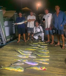 Captain Chase Eberle of Chasin’ Tides Charters had a nice evening on the ocean yesterday. Captain Chase put his anglers on a bunch of peanut mahi for the fish box and also released some big sand tiger sharks.