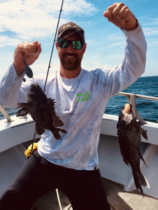 Mate Mark Pershing looks rather incredulous as he comes to grips with his wholly involuntary surrender of a nice sea bass. Boy, that fish is going to be awesome on the captain’s table tonight.