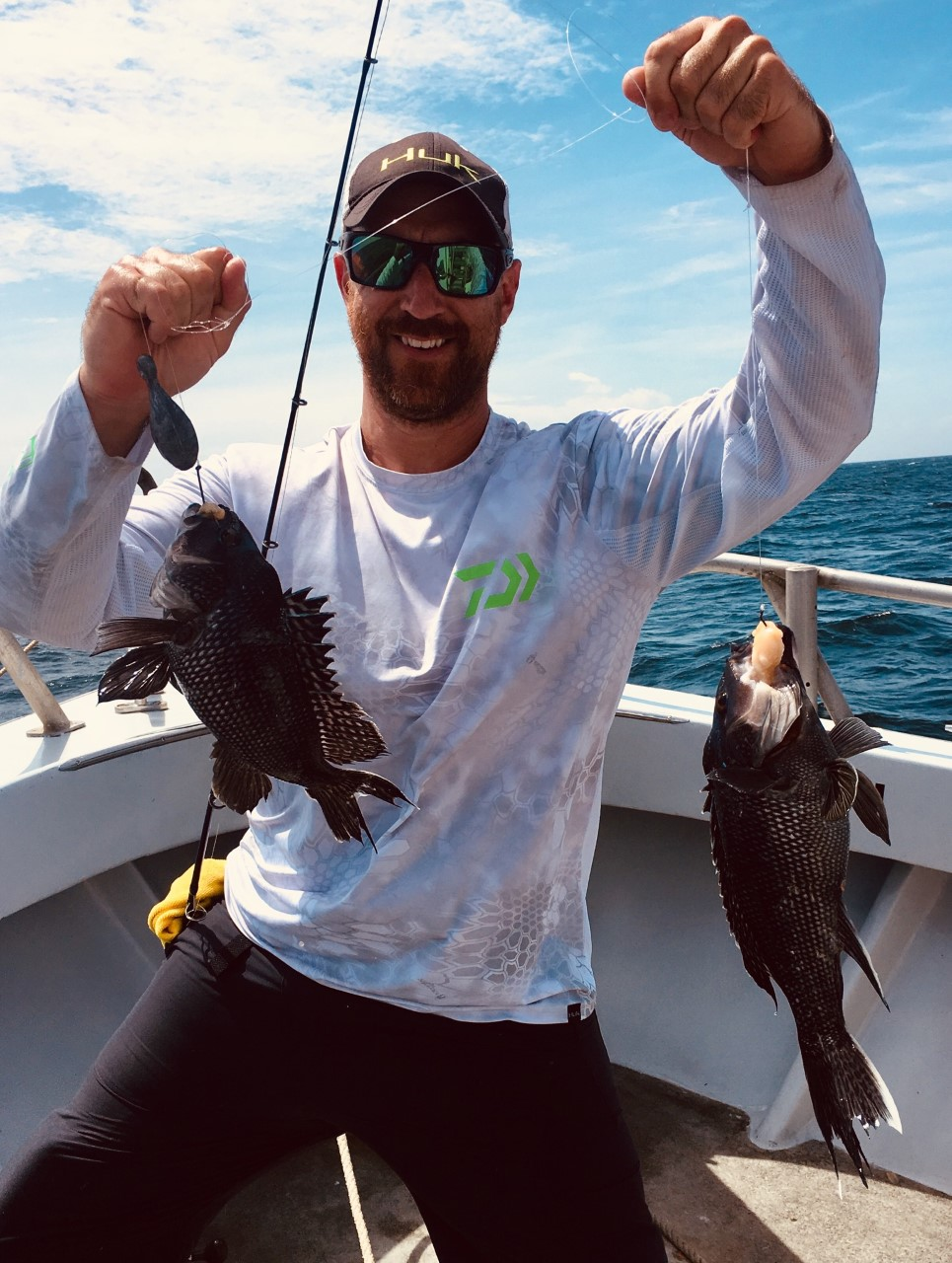 Caught some sea bass – working for em. Big clouds of fish on sounders from which we’d see 2 or 3 keepers. Sometimes.