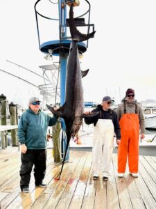 The crew of the private boat Chrissy B out of the Ocean City Fishing Center caught this beautiful 231 pound swordfish today. Anglers Dave Bogert, Mike Tur-owski & Rob Griggs weighed the fish on the big scale at OCFC. Photo credit to OCFC.