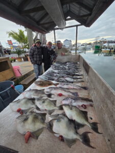 Now that that most of the offshore species have headed to warmer locations what’s left of the offshore fishing fleet is switching to deep dropping on offshore trips for tilefish and swordfish. Captain Willie Zimmerman of RoShamBo holds the current Maryland State Record for swordfish of 393 pounds so you know he knows his stuff. Captain Willie and crew had a great trip with two swordfish and a bunch of nice tilefish this weekend.