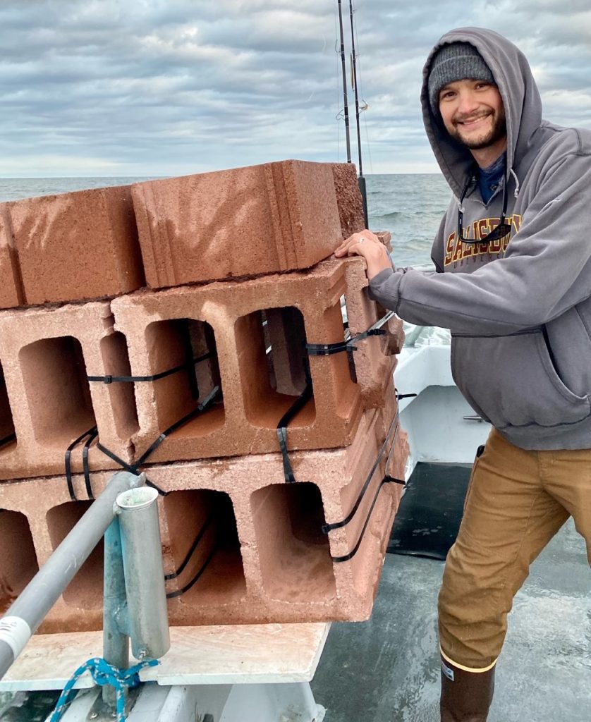 On our way off we paused briefly at Capt Bob Gowar’s Memorial Reef where Ryan B of OC gave today’s reef blocks a hearty shove. We then continued on our way.
