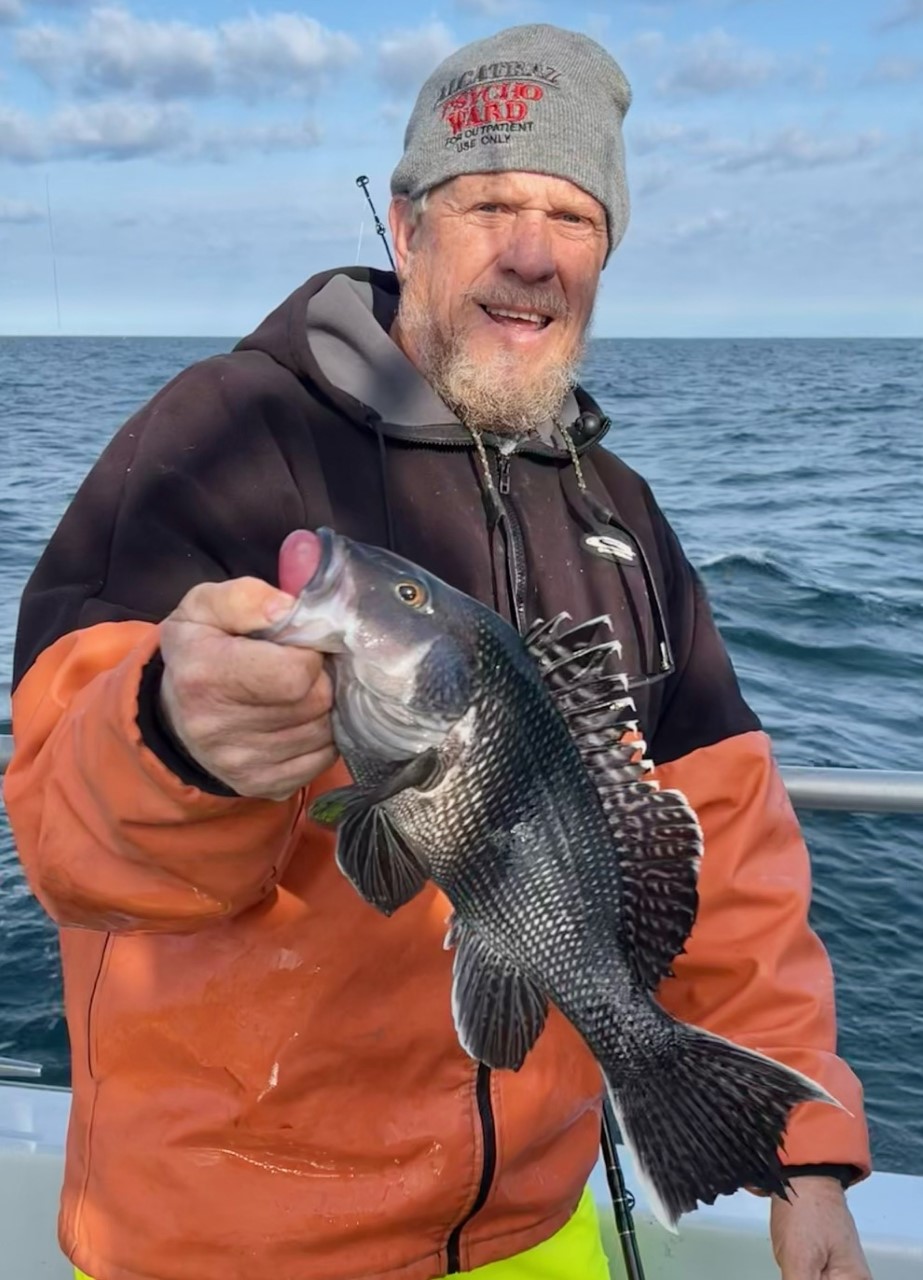 Captain Monty Hawkins of the Morning Star had sea bass boat limit #9 today and his anglers were super excited about it