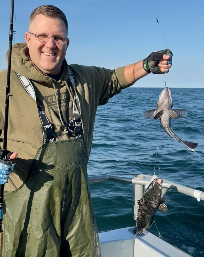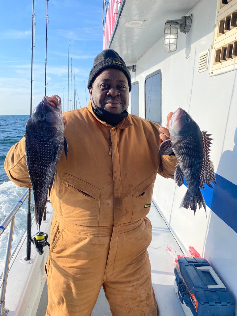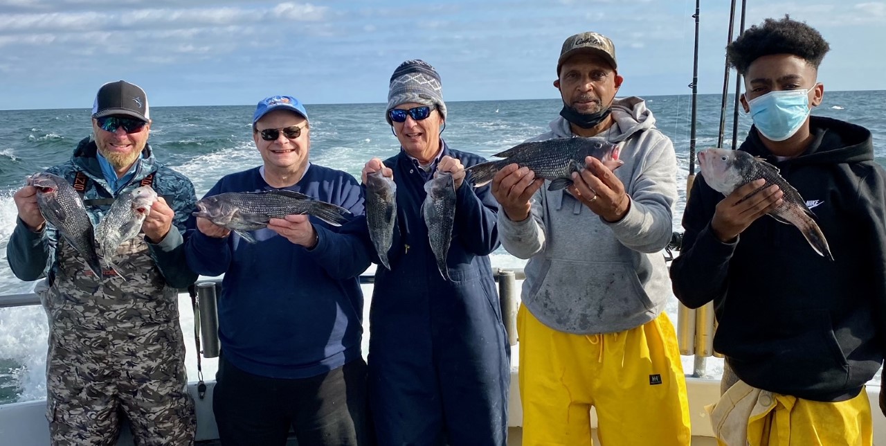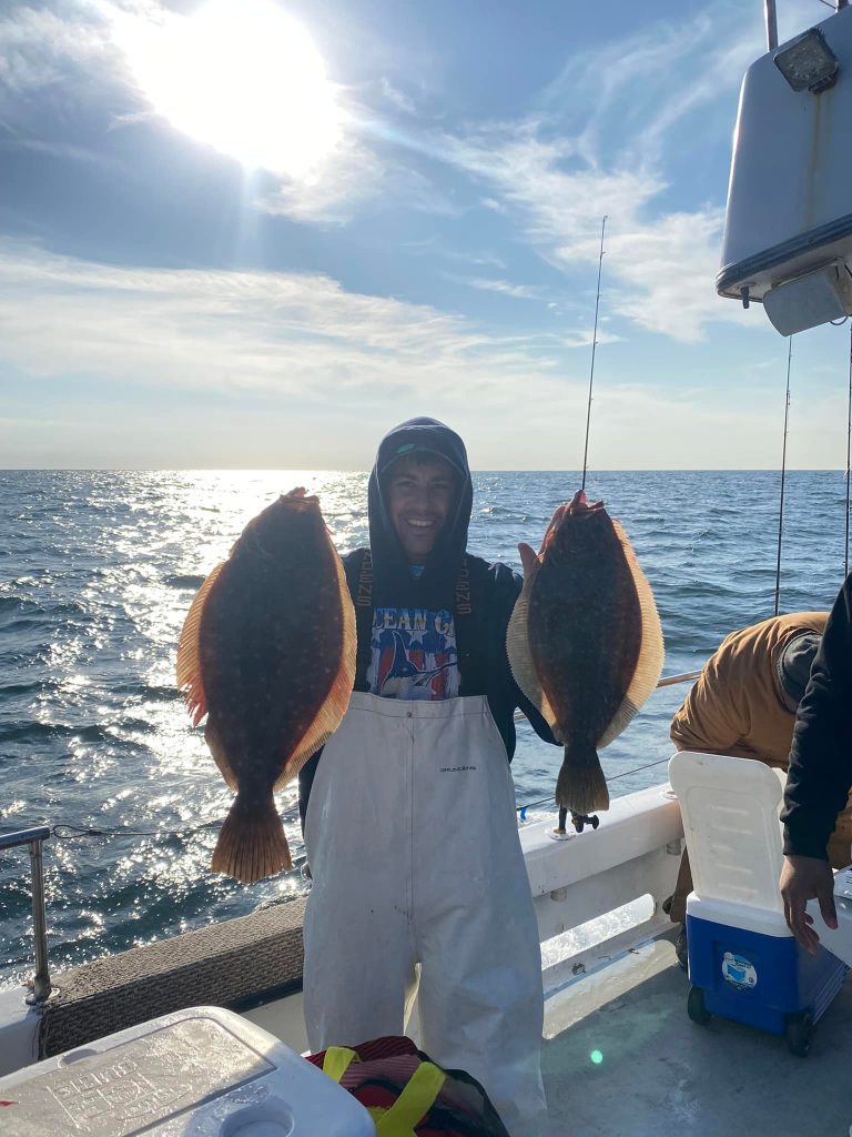Captain Chris Mizurak of the Angler had a few flounder on board today as well with the largest being 5 pounds.  There were a bunch of sea bass and a big bluefish in the mix today too.  Tomorrow is cancelled due to weather.