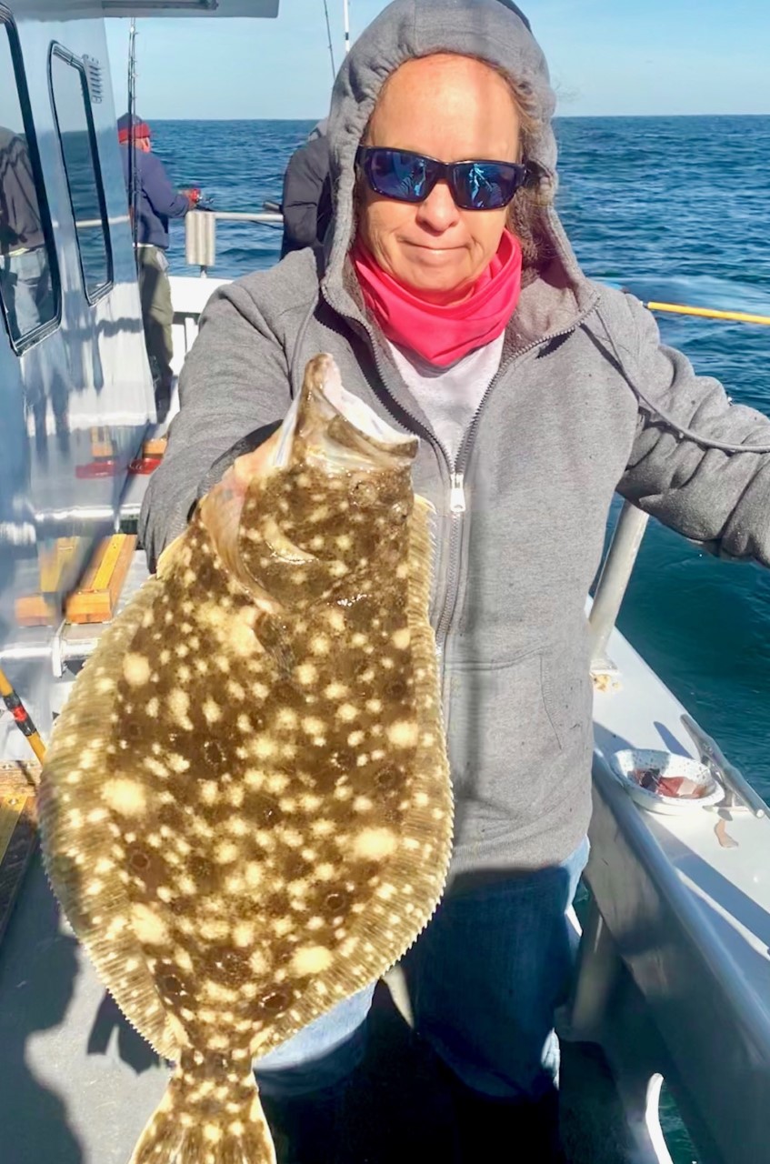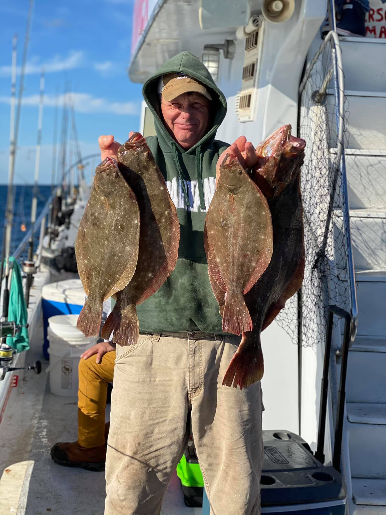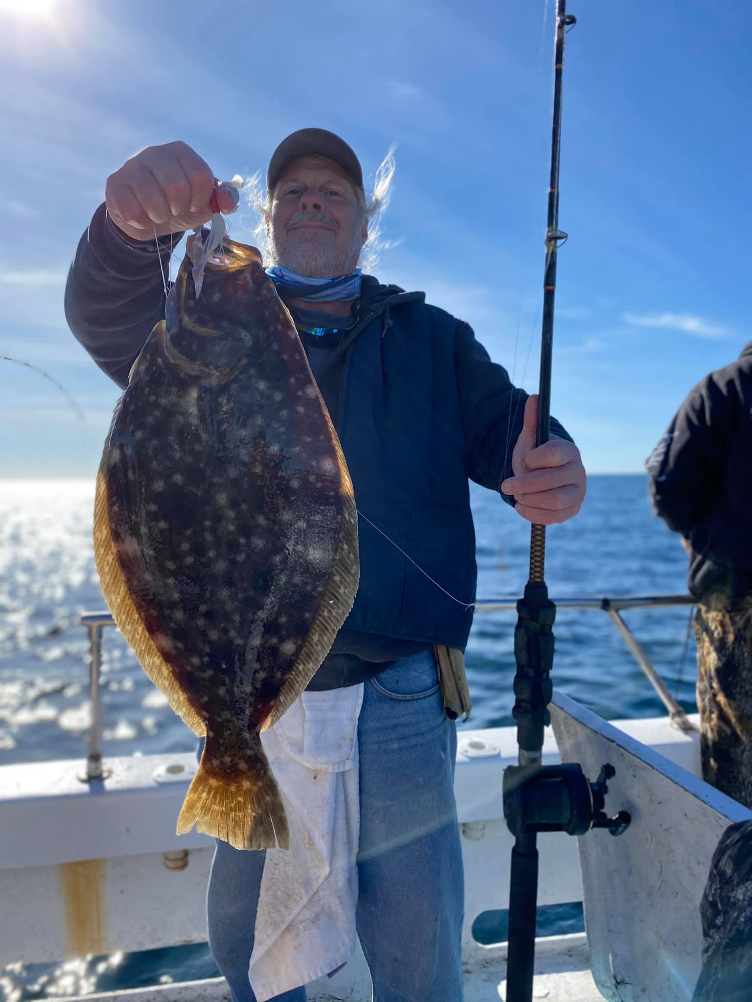 As cold as it was this morning there wasn’t much wind to speak of so it was off to the rip for the ocean going party boat fleet. They found fishing right where they left it with several species still coming over the rail. Captain Chris Mizurak of the Angler reported a good sea bass bite today, some triggerfish, a few porgies and a mess of flounder up to 6.5 pounds.