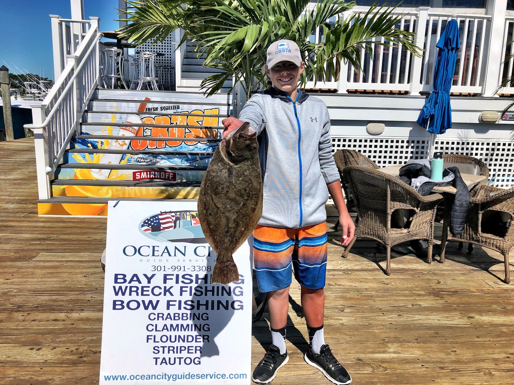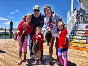 It was surely breezy today and conditions in the bay were tough, but Captain John Prather of Ocean City Guide Service got it done once again and put his anglers on some good flounder fishing. This morning Captain John had some young anglers from Chambersburg, PA on board and had three nice keepers and this afternoon it was another nice flounder for a junior angler.