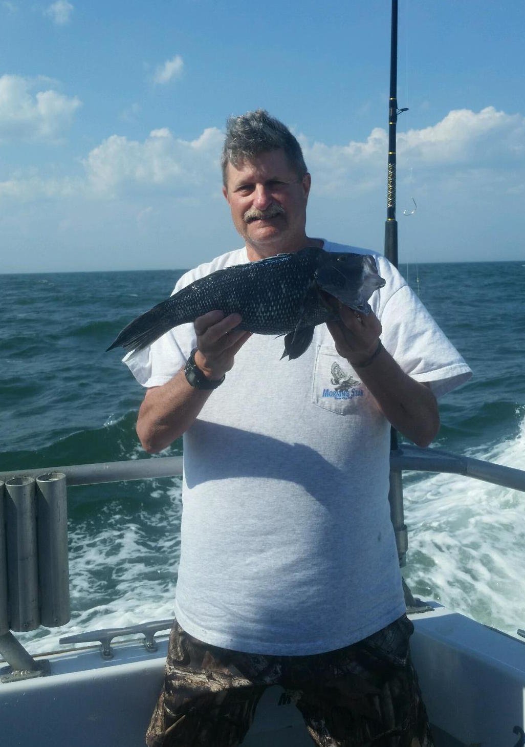 The Morning Star out of the Ocean City Fishing Center was on the rip today with Captain Monty Hawkins at the helm. Captain Monty reported good sea bass fishing with some limits around the rail and “fish fries around.” Sea Bass Bob displays a nice bass he took on a jig today.