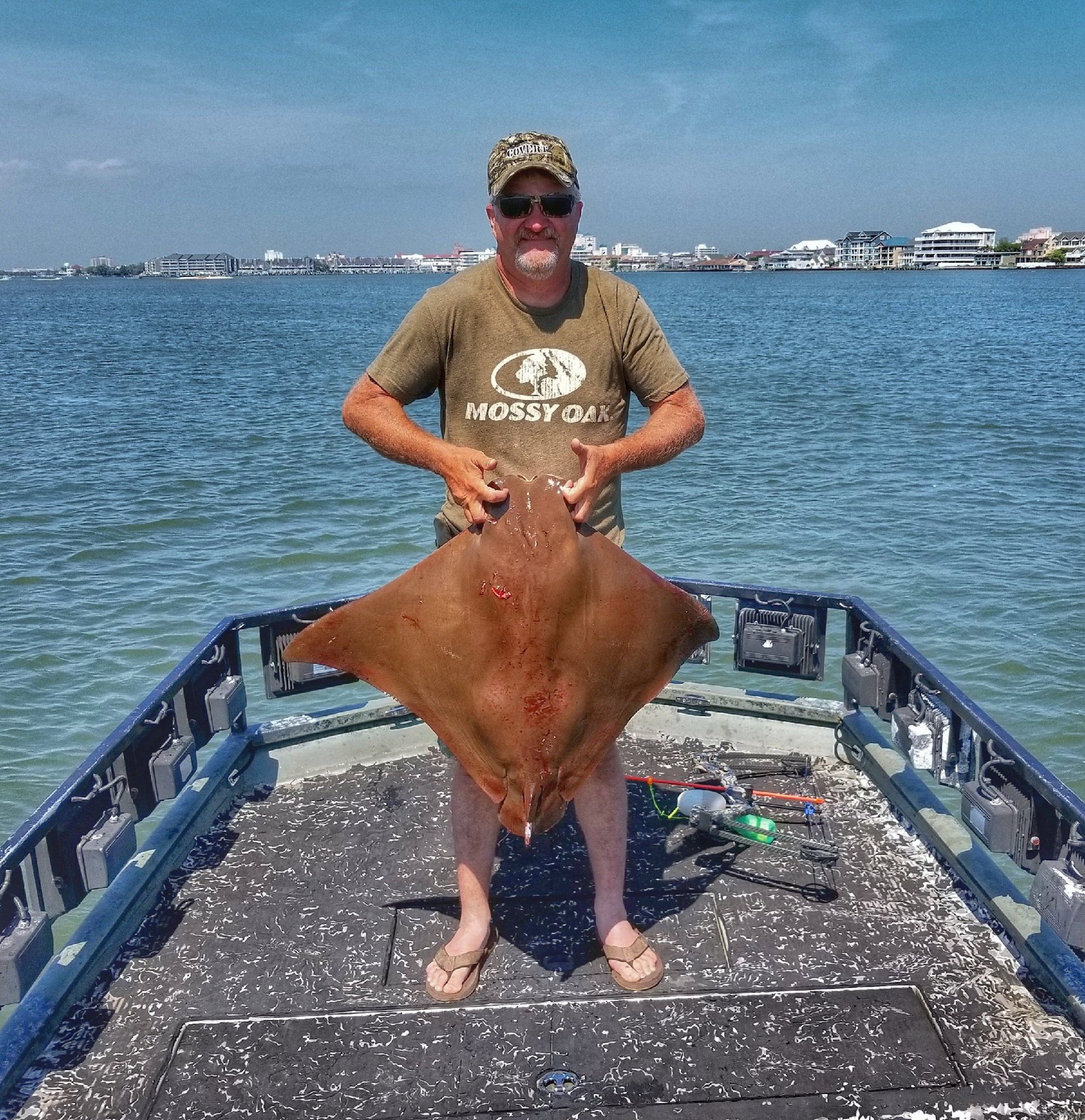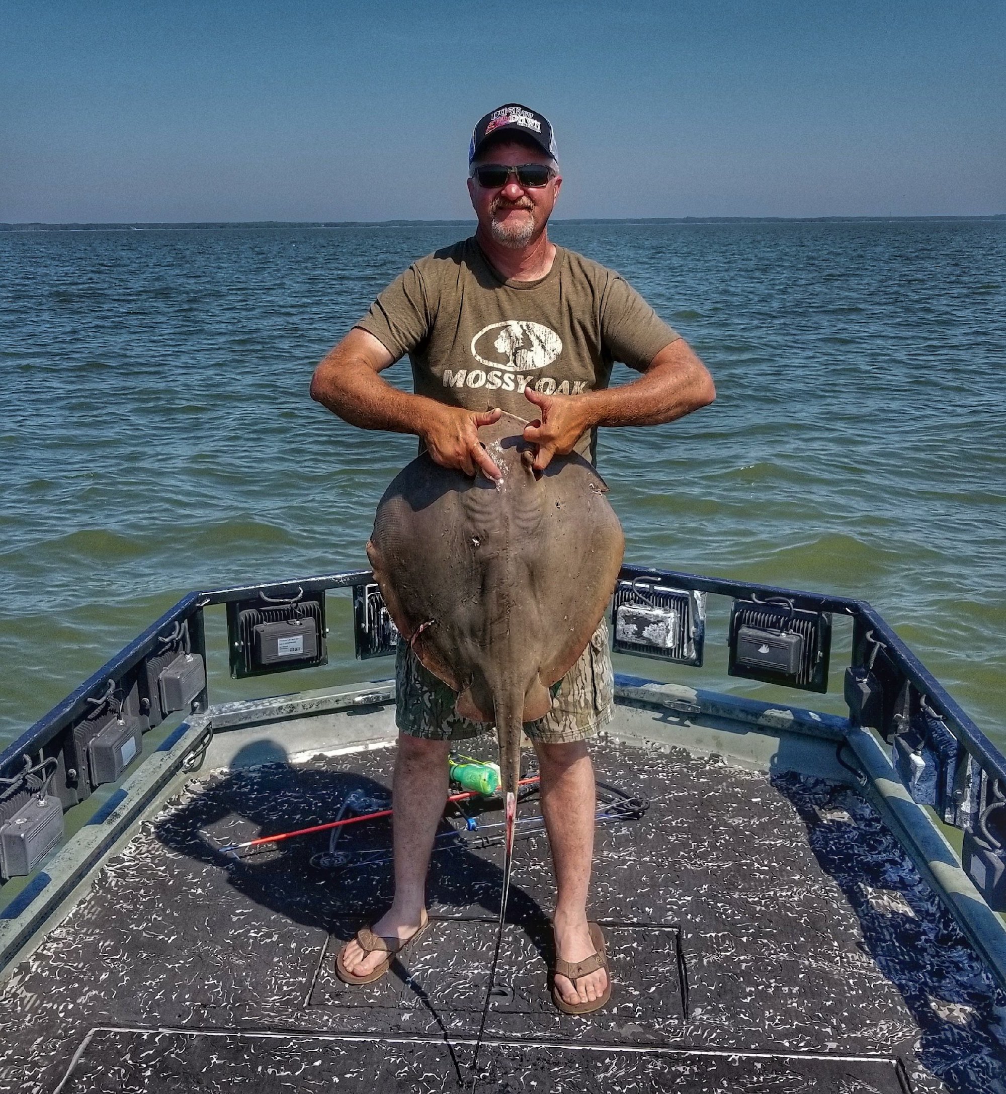 Captain Marc Spagnola has got the Dusk to Dawn Bowfishing all fired up and ready for the season. Last night Captain Marc had some great shooting over on the Nanticoke River and today in the south bay. Captain Marc’s shooters found some big long nose gar last night and today it was southern and cow nosed rays.