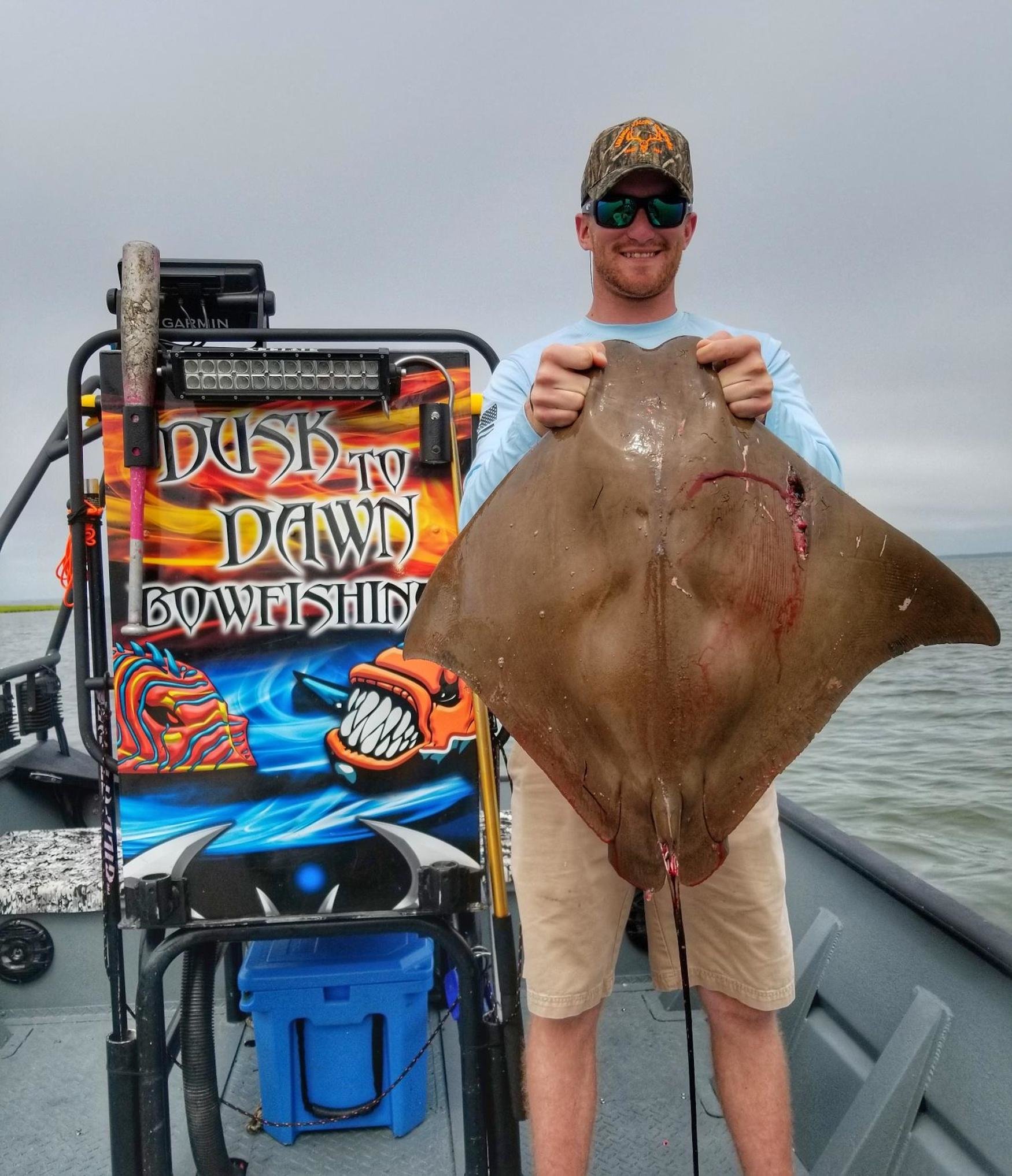 Yesterday Captain Marc Spagnola of Dusk to Dawn Bowfishing toughed out the windy conditions and found some good action for cow nosed and southern rays for his anglers.