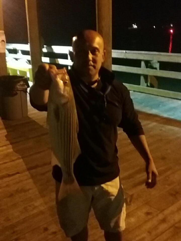 US Marine Tom Clark and his buddy had a good time with the throwback rockfish last night on the pier.