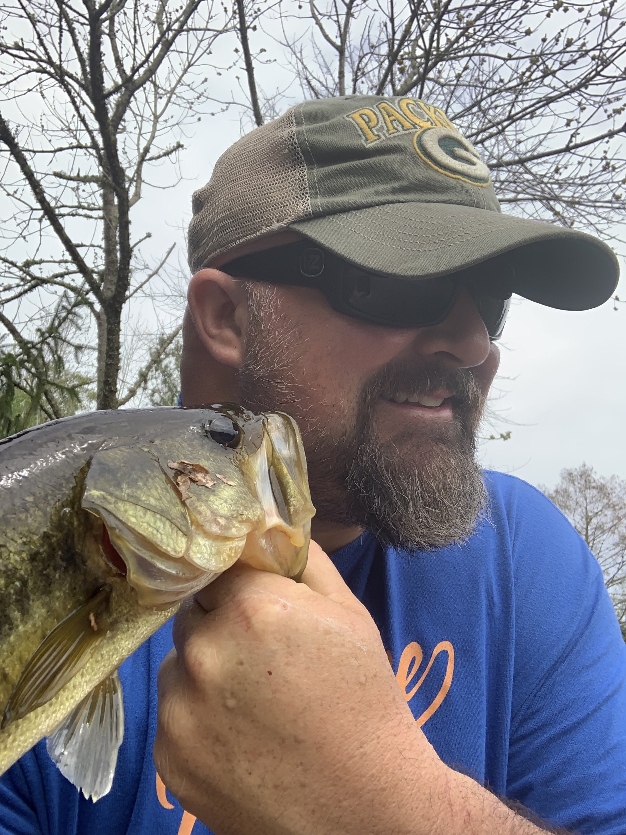 My good friend David Wells started his Good Friday off on a local pond and was able to entice some largemouth bass to take a bait. “Dubs” caught and released several nice bass after taking a few pics to show their striking resemblance to himself.