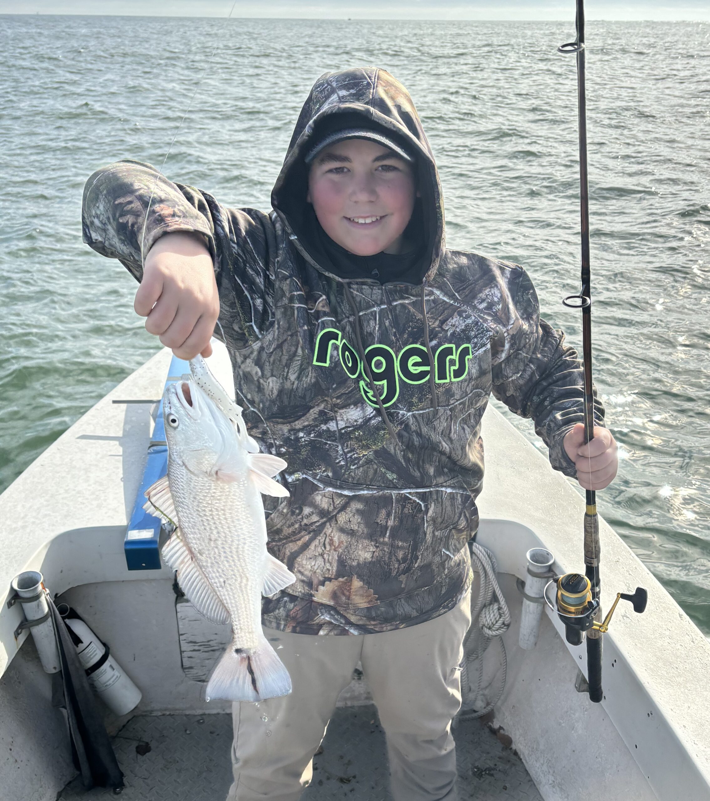 Big Bird Cropper had his young nephew David Warren out for some fishing today and they had a great time catching red drum and rockfish in the OC Inlet.
