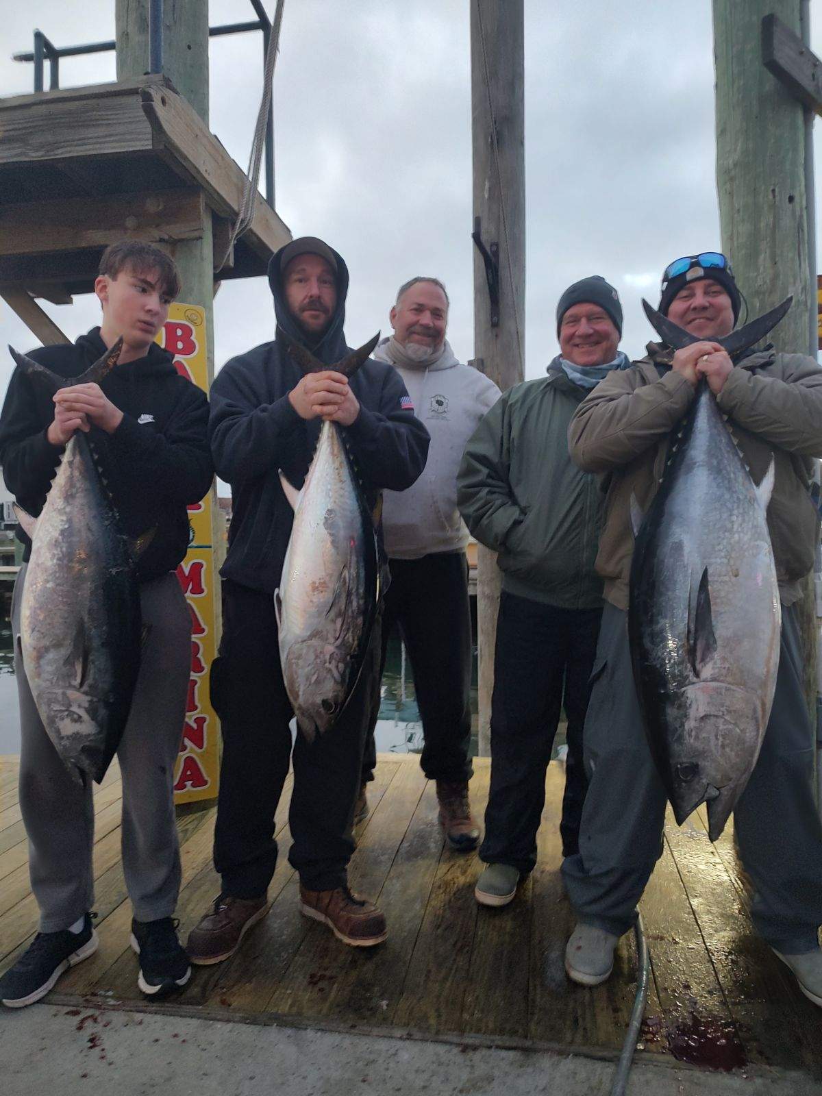 Captain Dale Lisi of Foolish Pleasures had a good day of tuna fishing today as well putting three “under” bluefin in the fish box.