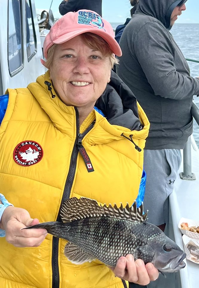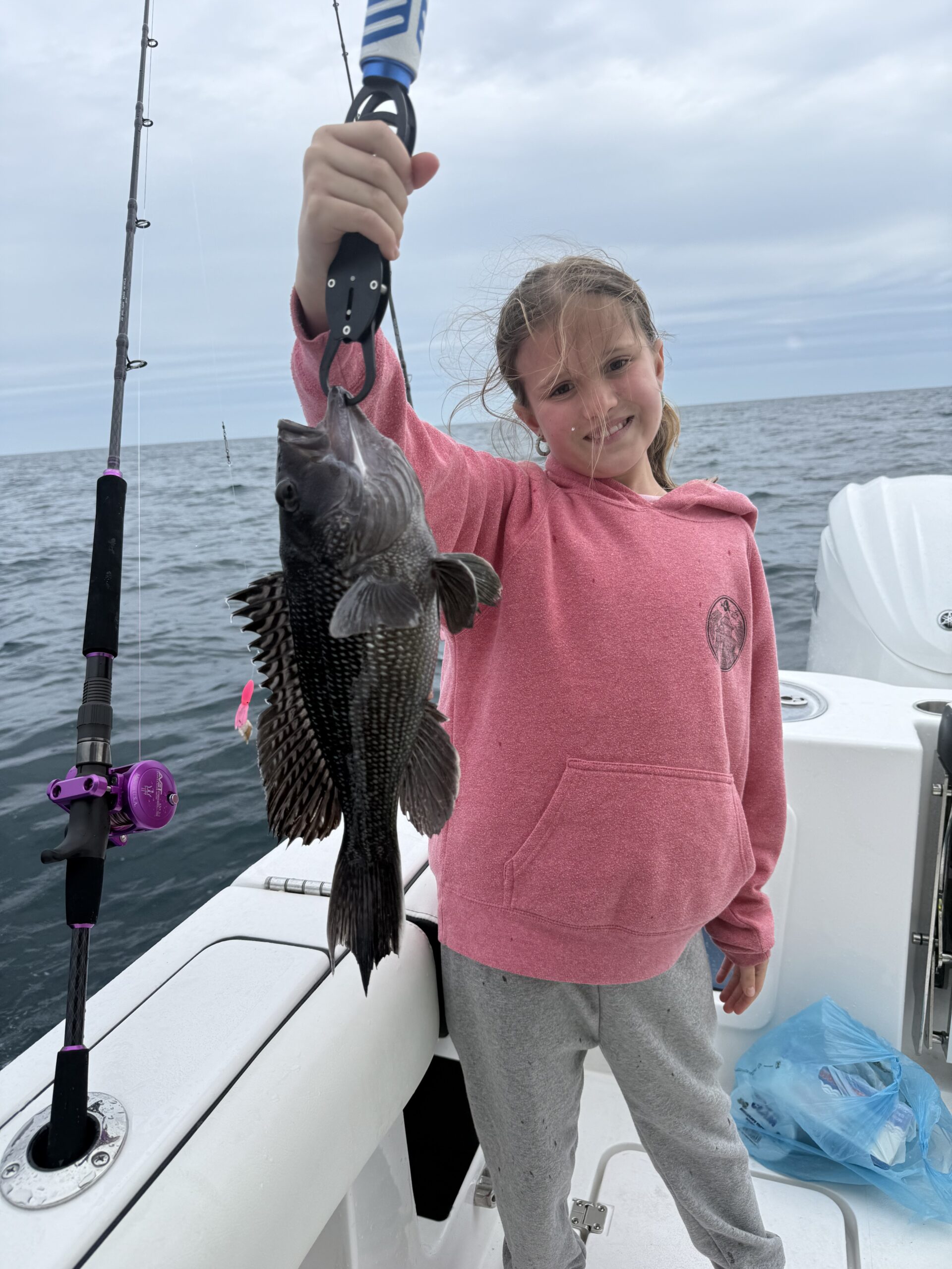 Ryan Cowder, Ethan Cowder, Wayne Grossman, Jason Pylypczuk and daughters Eva and Adley had a great day of sea bass fishing at Eastern Shore Joey’s secret spot.