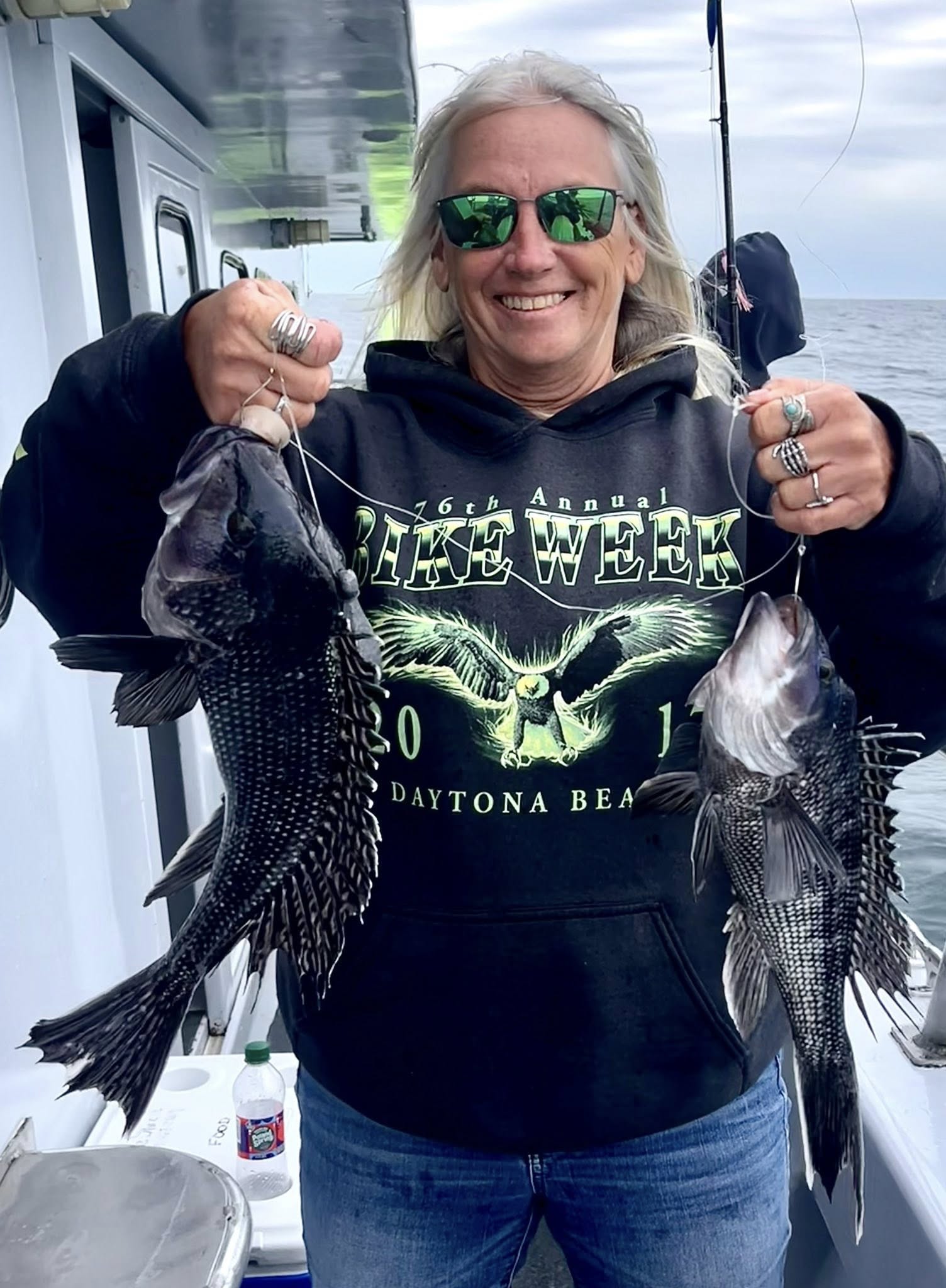 Captain Monty Hawkins of the Morning Star had a nice day today with some big sea bass coming aboard.