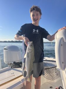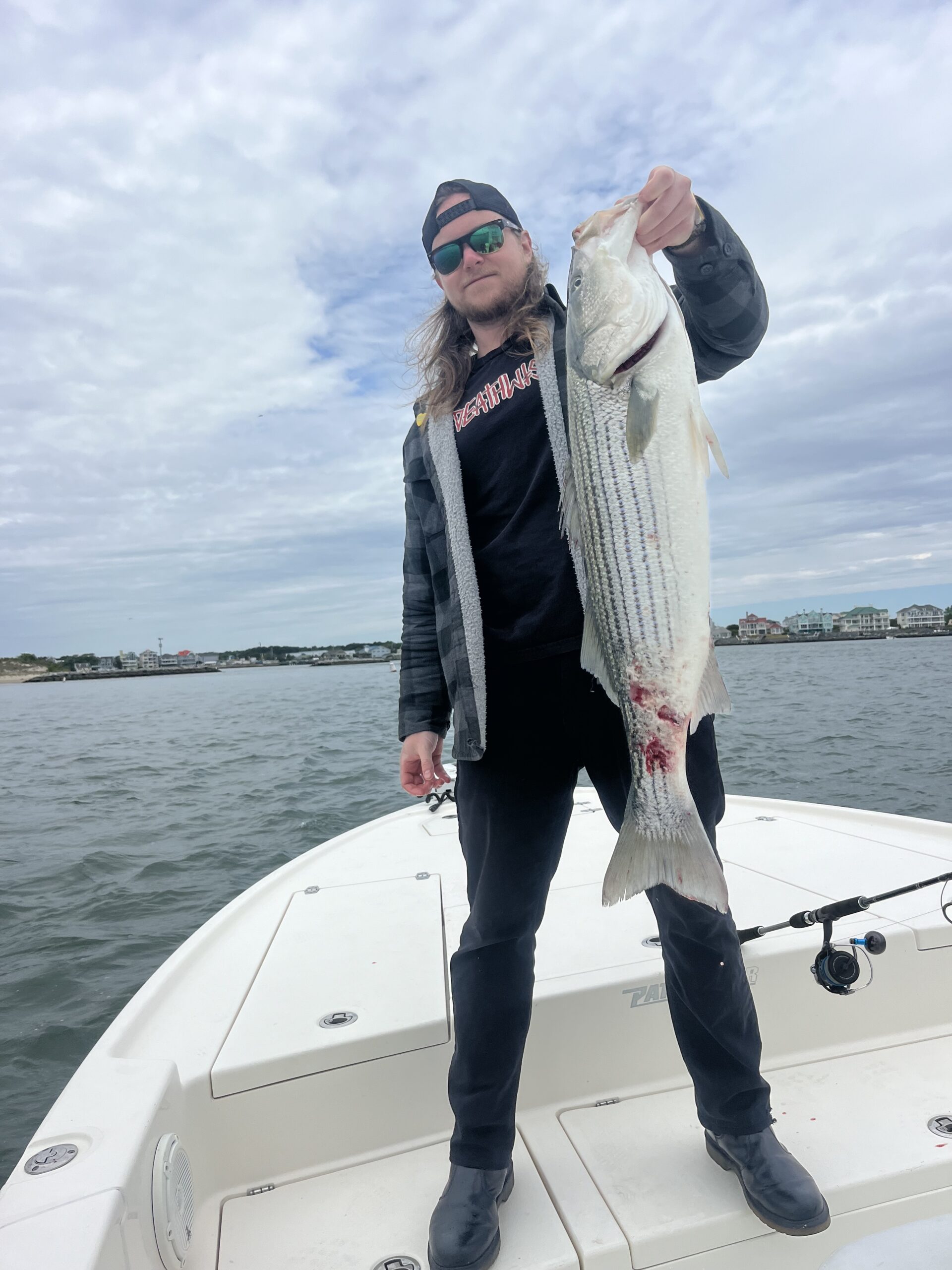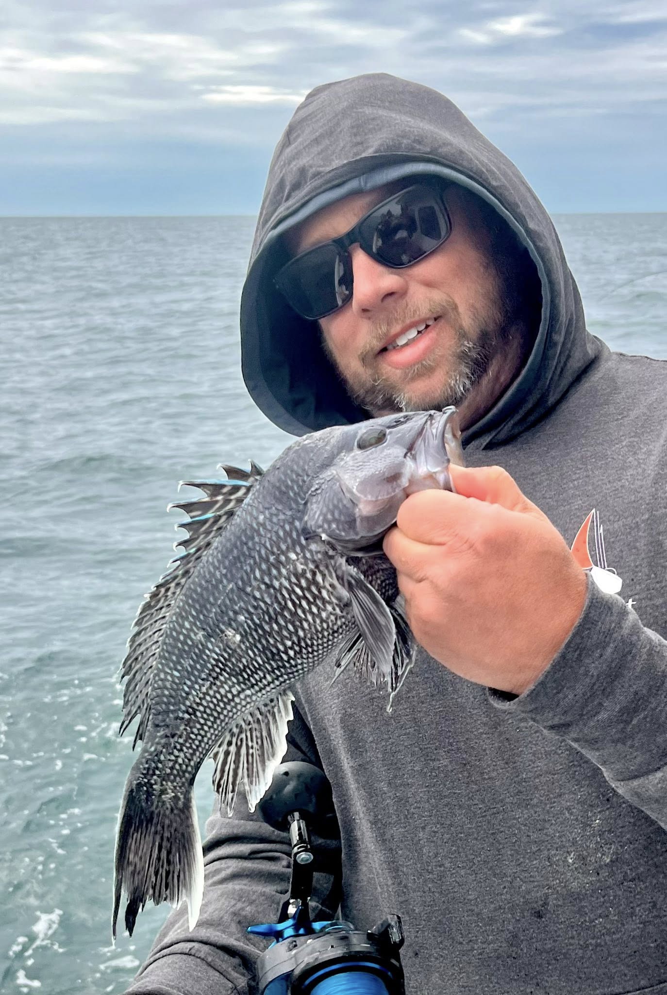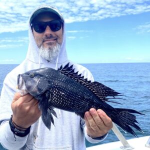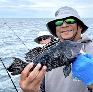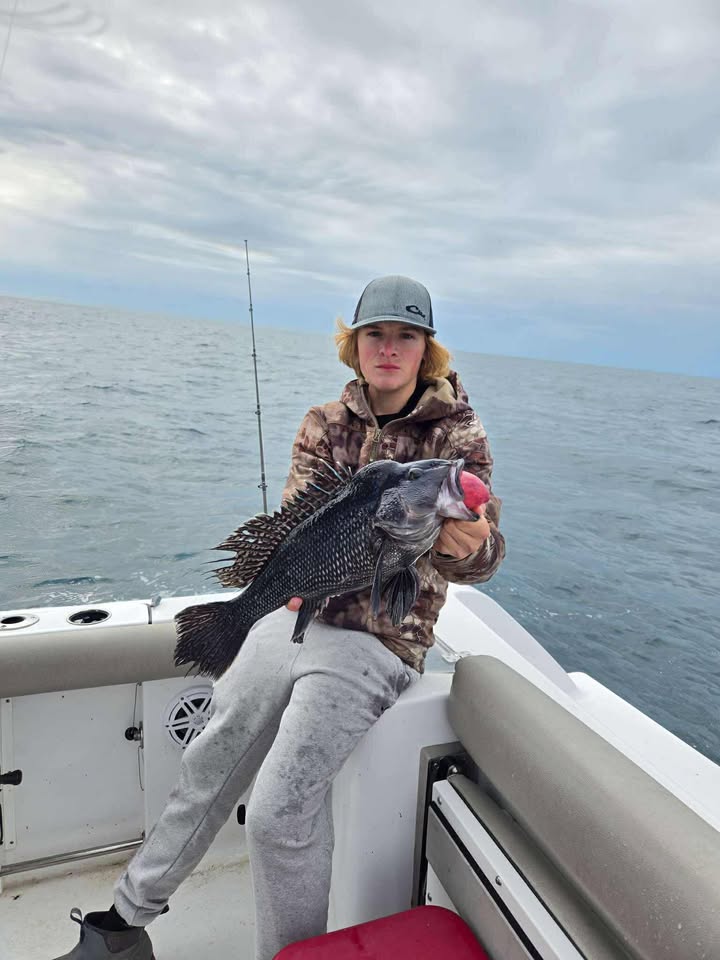 Landon Derbyshire caught this 21″ stud sea bass on a calm ocean today.