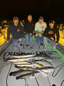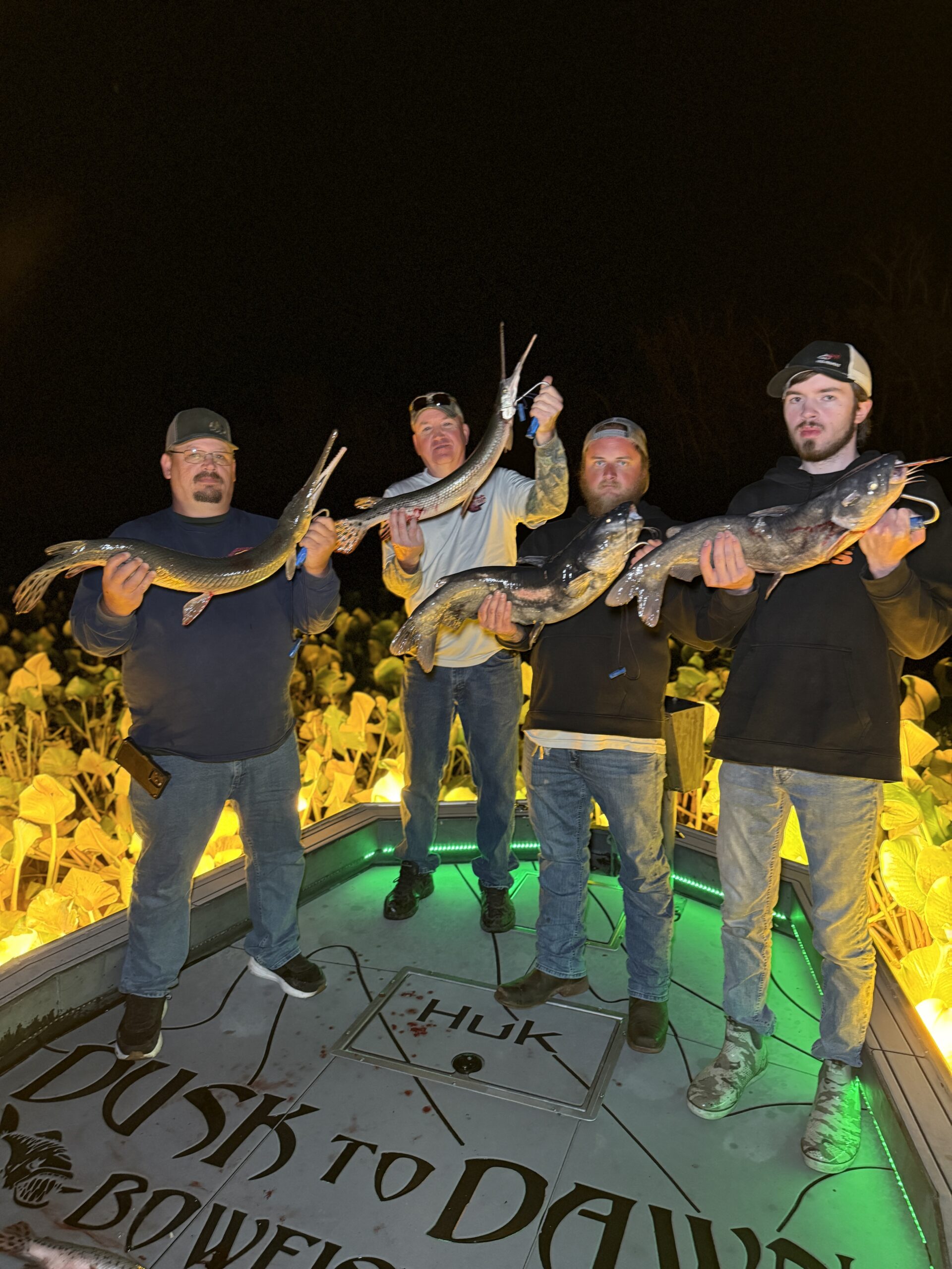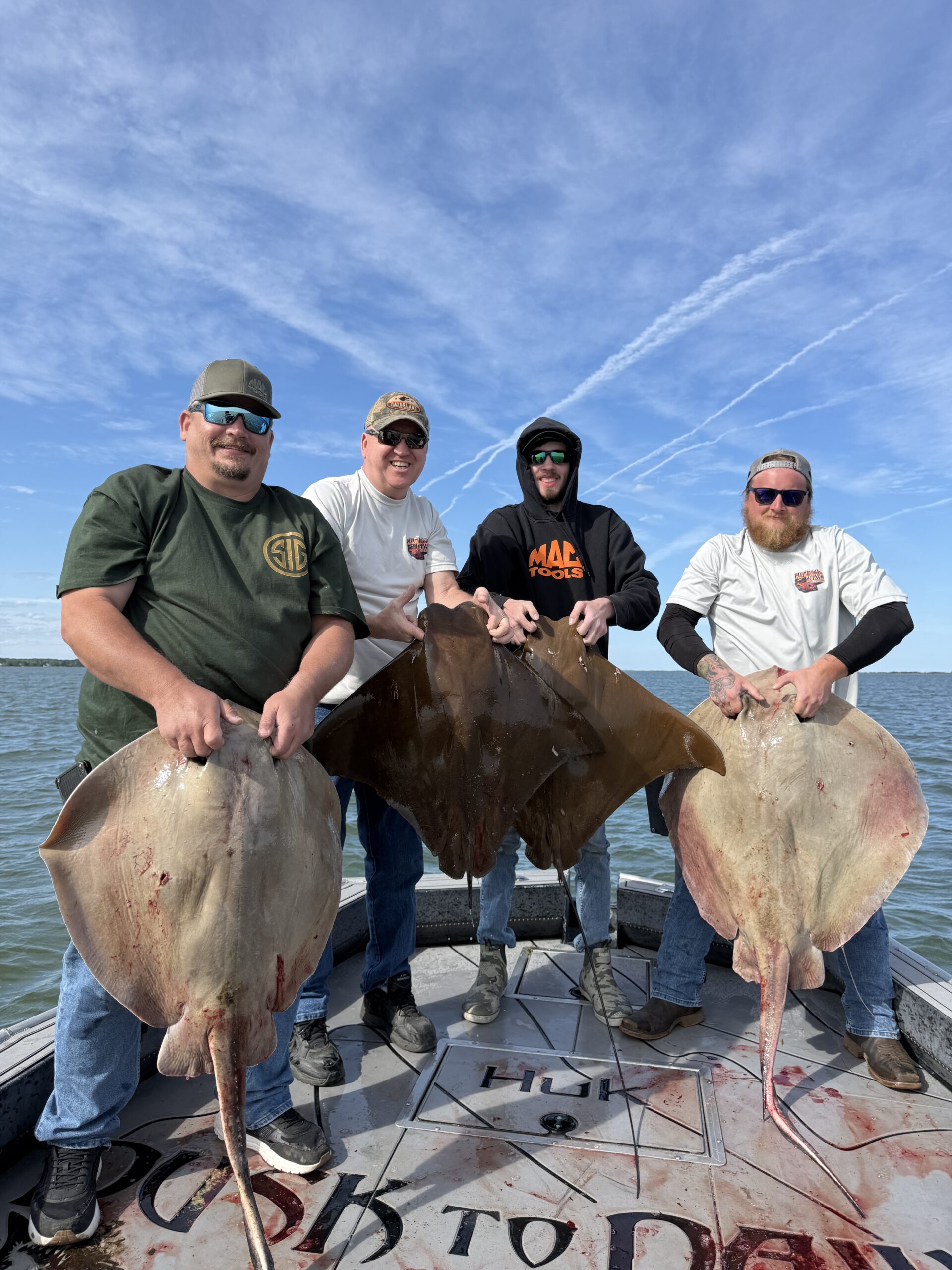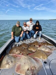 Captain Marc Spagnola of Dusk to Dawn Bowfishing is back to burning the candle at both ends. Last night it was gar, catfish and snakehead on the river, today it was big rays in the south bay, followed by some keeper flounder with the family.