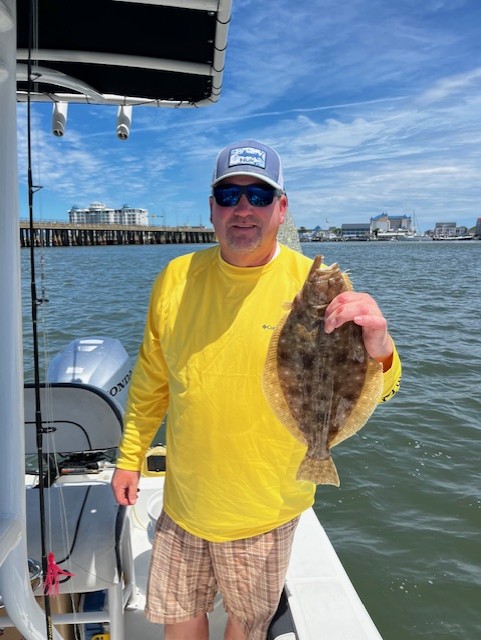 Brian Mills jigged up this very nice 22.5″ flounder in the West Channel this morning.