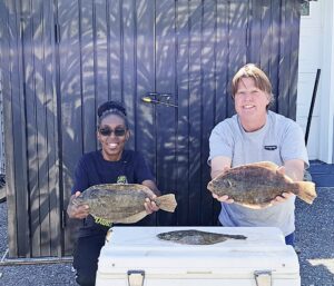 Jeff and Sarah from the Frederick Saltwater Anglers club had three keeper flounder outside of the south jetty.