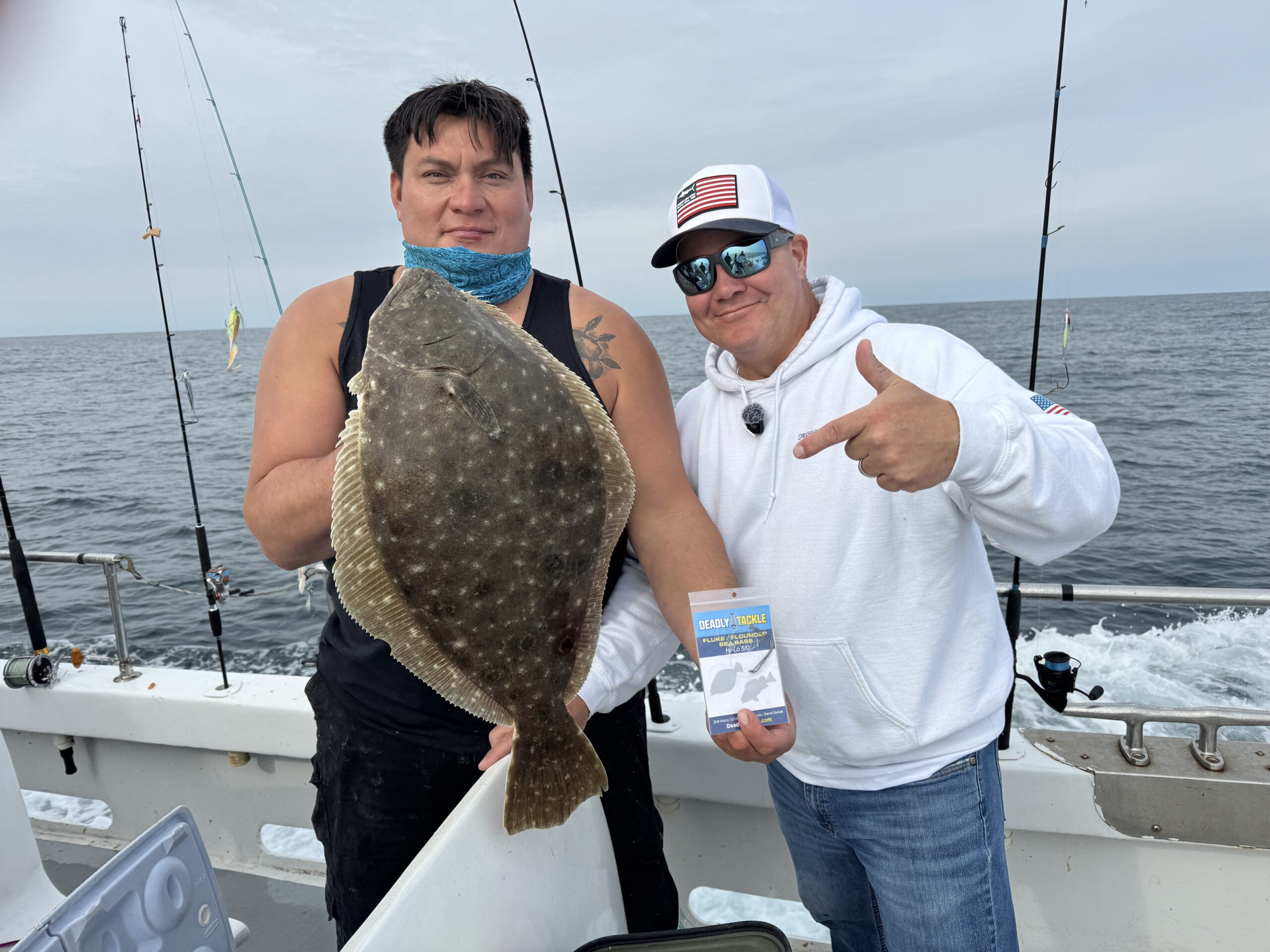 I had the pleasure of heading out on the Angler today with Captain Chris Mizurak and mates Steve and Jack and I had an awesome time and caught some nice fish. I was testing our new Deadly Tackle bucktail jigs (they’ll launch spring of 2026) and filming for some YouTube and possibly Hooked on OC. There were lots of sea bass around the rail, a couple of nice triggerfish and several keeper flounder up to a big 7.5 pounds. The two biggest fish of the day and the uncontested fish pool winner was Ever who was fishing right next to me. Ever caught a nice 5.5 or so pound flounder early on and then just before quitting time he landed a personal best 7.5 pounder on a Deadly Tackle Hi-Lo 5/0 that I had given him earlier. Was an awesome fish and an awesome trip. Check it out below!!