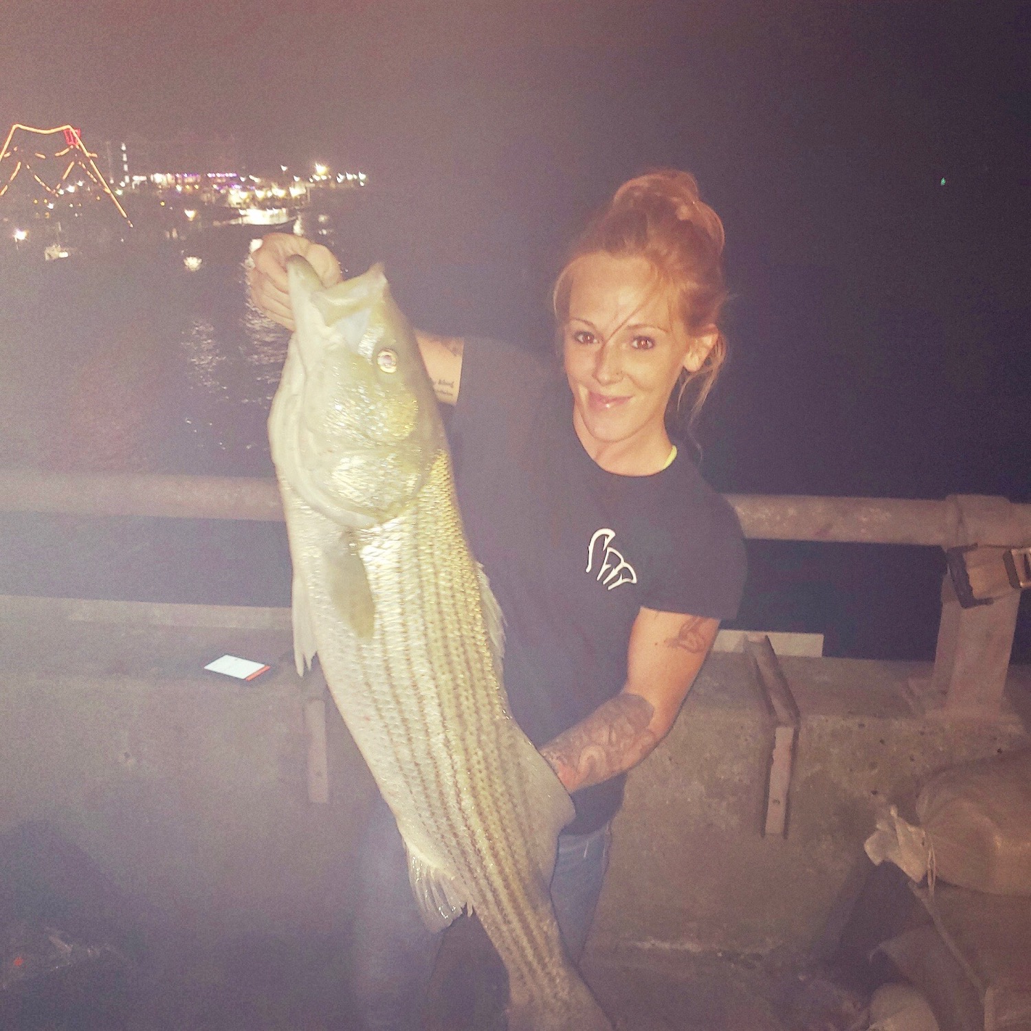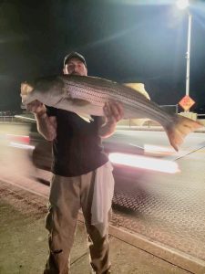 John and Amber from Baltimore are nighttime bridge fisherfolks and this time of year they start to catch some keeper sized rockfish from the route 50 bridge. That’s exactly what the couple did last night and Bear down at the Oceanic Pier got a few pics of their successes. John and Amber each had fat keeper sized fish that they caught on Zoom baits cast from the bridge.