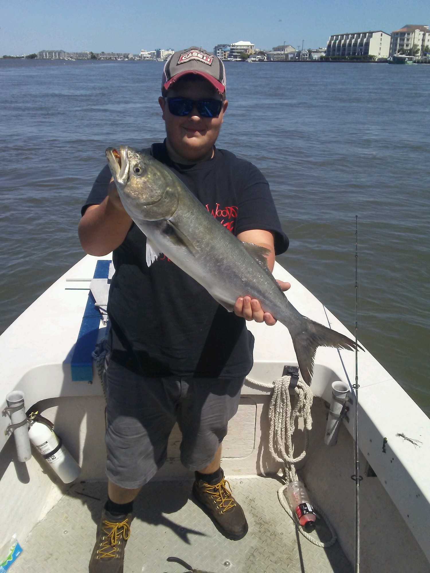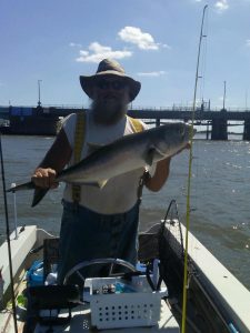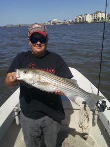 I don’t know of anyone that catches more rockfish than my buddy Big Bird Cropper. Most of the time it’s catch and release action, but today he put Noah on his first ever keeper rockfish from the route 50 bridge. Bird added a jumbo 33″ bluefish and the guys also released some short rock. All of the fish were caught on Big Bird’s World Famous Roy Rig which we just stocked up on.