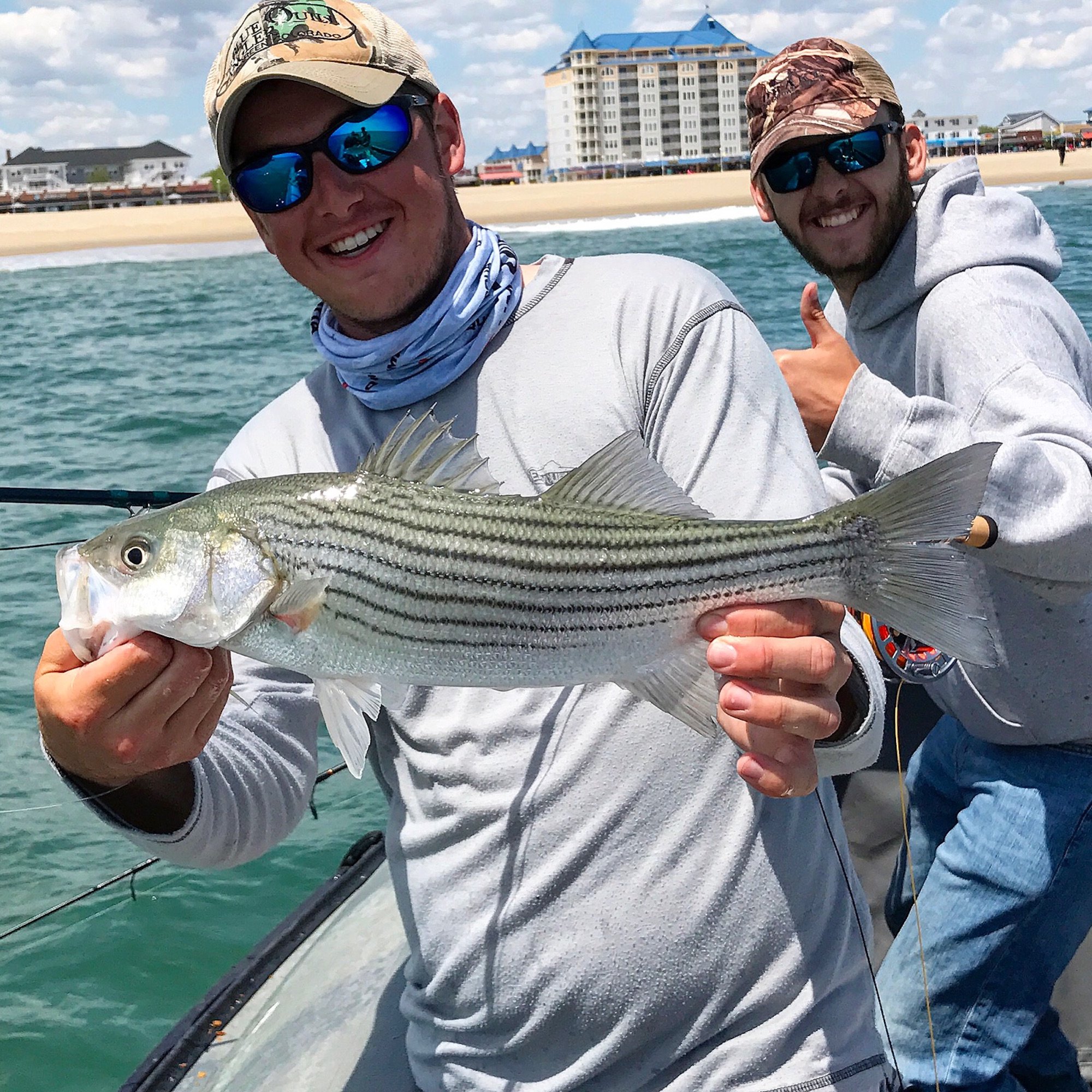 The inshore action was pretty stellar today as well for rockfish and some bluefish. Captain Jeff Coats of Pitboss Fishing had some fly casters come down from Annapolis, MD today and he put them on the fish. After a helpful hint from Big Bird Cropper, Captain Jeff fished the south jetty, down the beach off of Assateague and just north of the fishing pier in the ocean and put the kaibosh on the school sized rockfish. The father and two son party caught just two bluefish, but caught over 70 small rockfish sometimes having three on at a time.