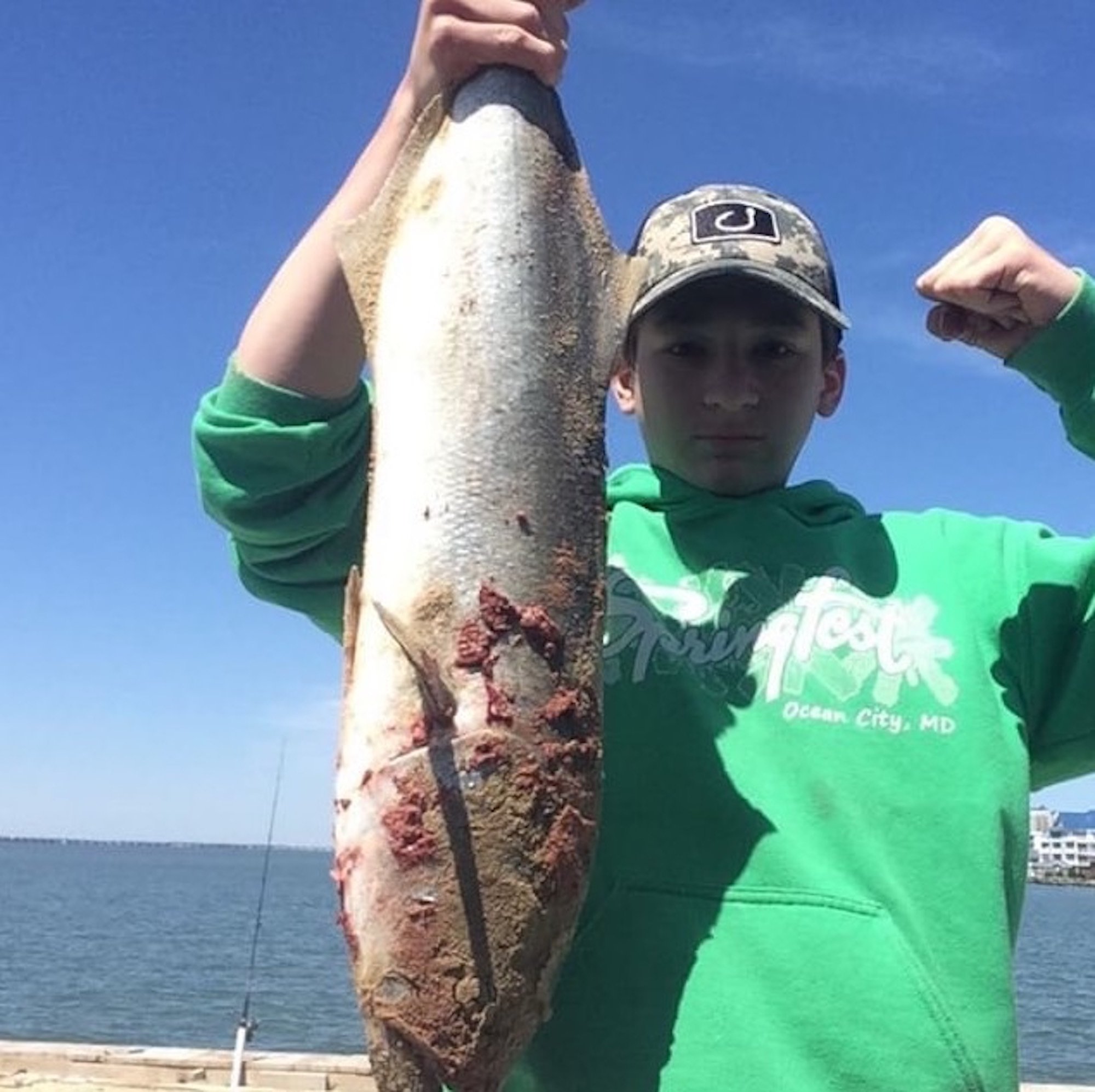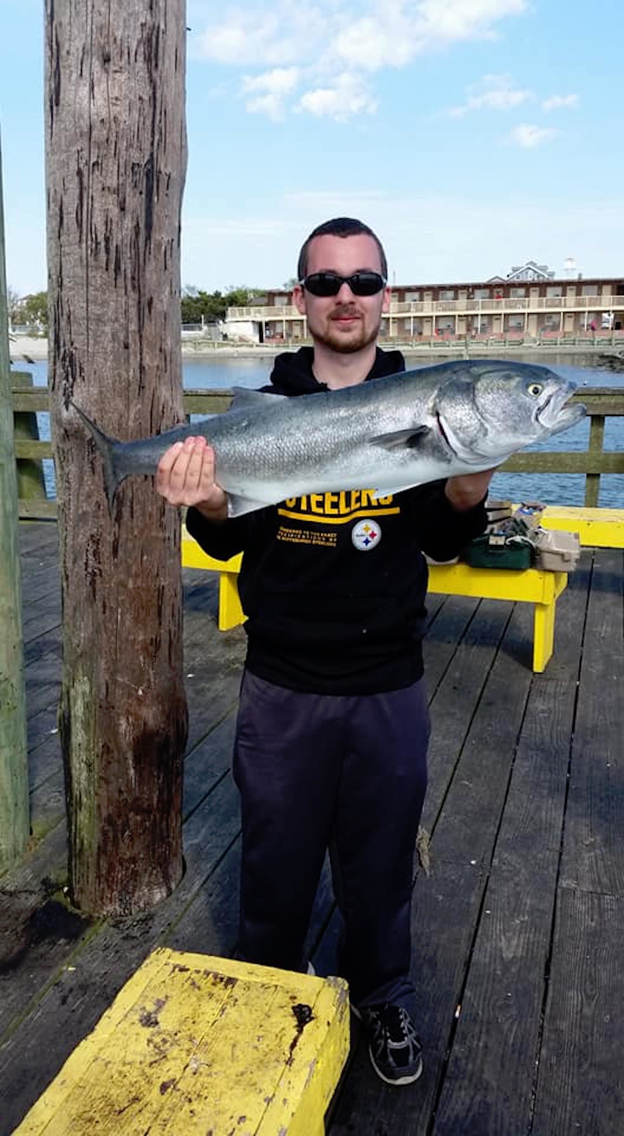 The bluefish bite may have slowed just a bit at the Oceanic Pier in downtown Ocean City, but there are still some fish being caught. Bear and Oceanic Pier webmaster Bob Haltmeier got some shots of blues that are still coming over the rail. Bob even took a nice cleaning table selfie.