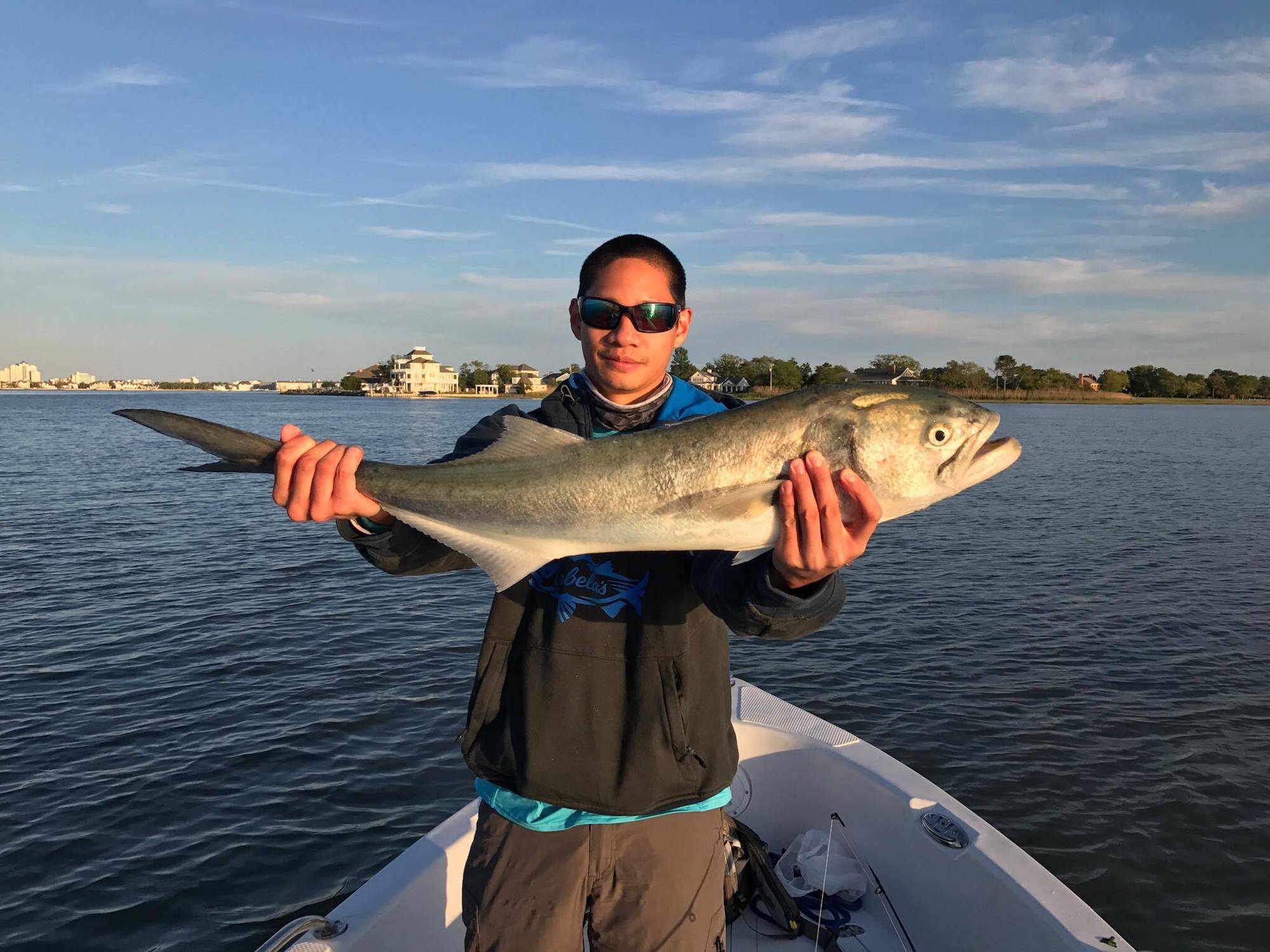 I got a Facebook submission from the Cayman Man with some nice shots of fish that his crew has caught recently. Minh landed a nice 18″ flounder near the route 50 bridge and Mike caught a 19.5″ flounder near the route 90 bridge and then a big old 37″ bluefish in the Thorofare.