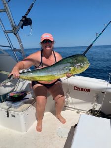 Dana Keller caught this nice 28 pound mahi on board the Chaos while fishing the Poor Man’s Canyon on Monday.