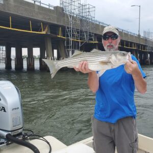 This angler had a rockfish that just missed the 28″ legal limit while fishing with Captain Jason Mumford of Lucky Break Charters.