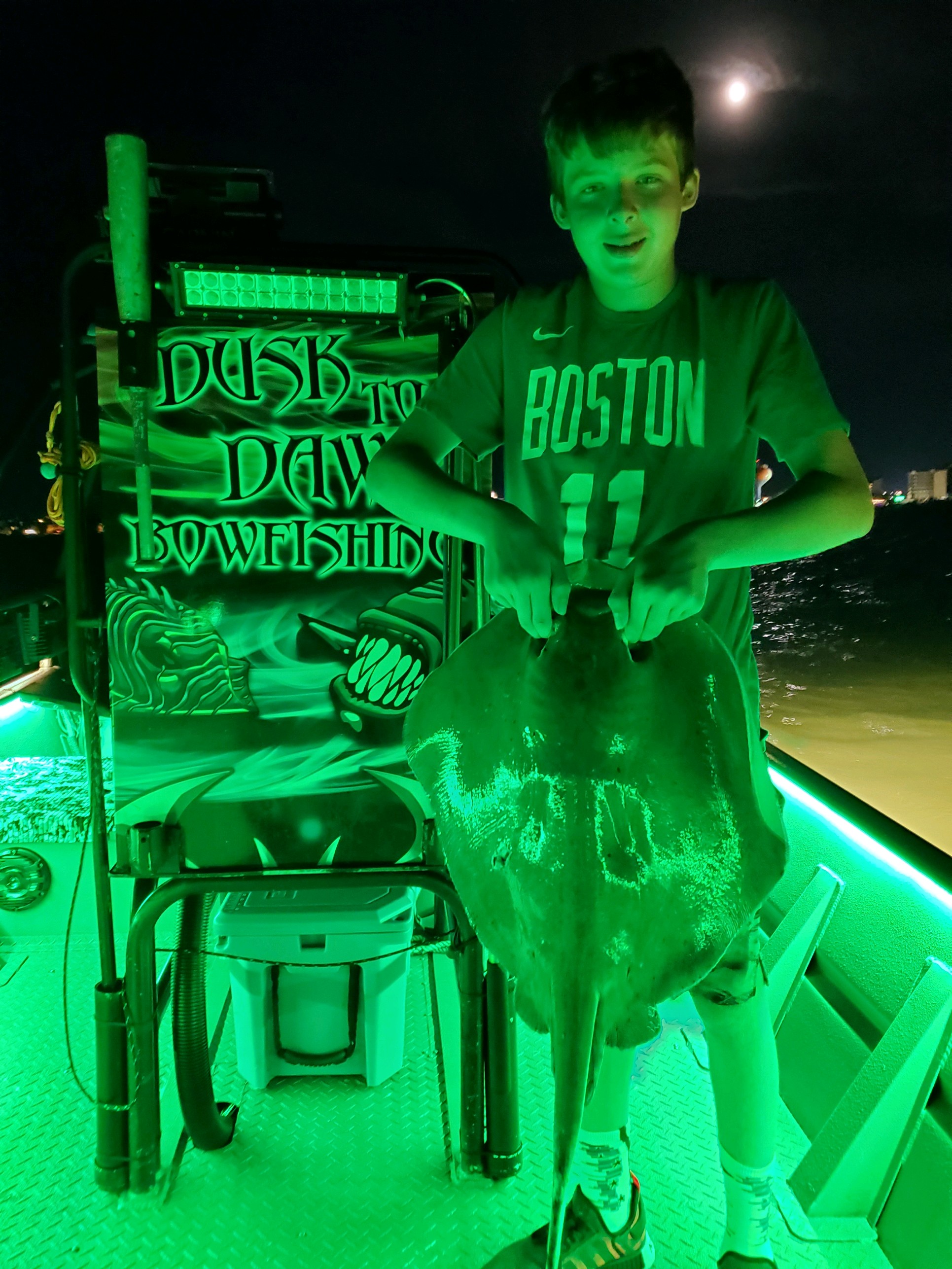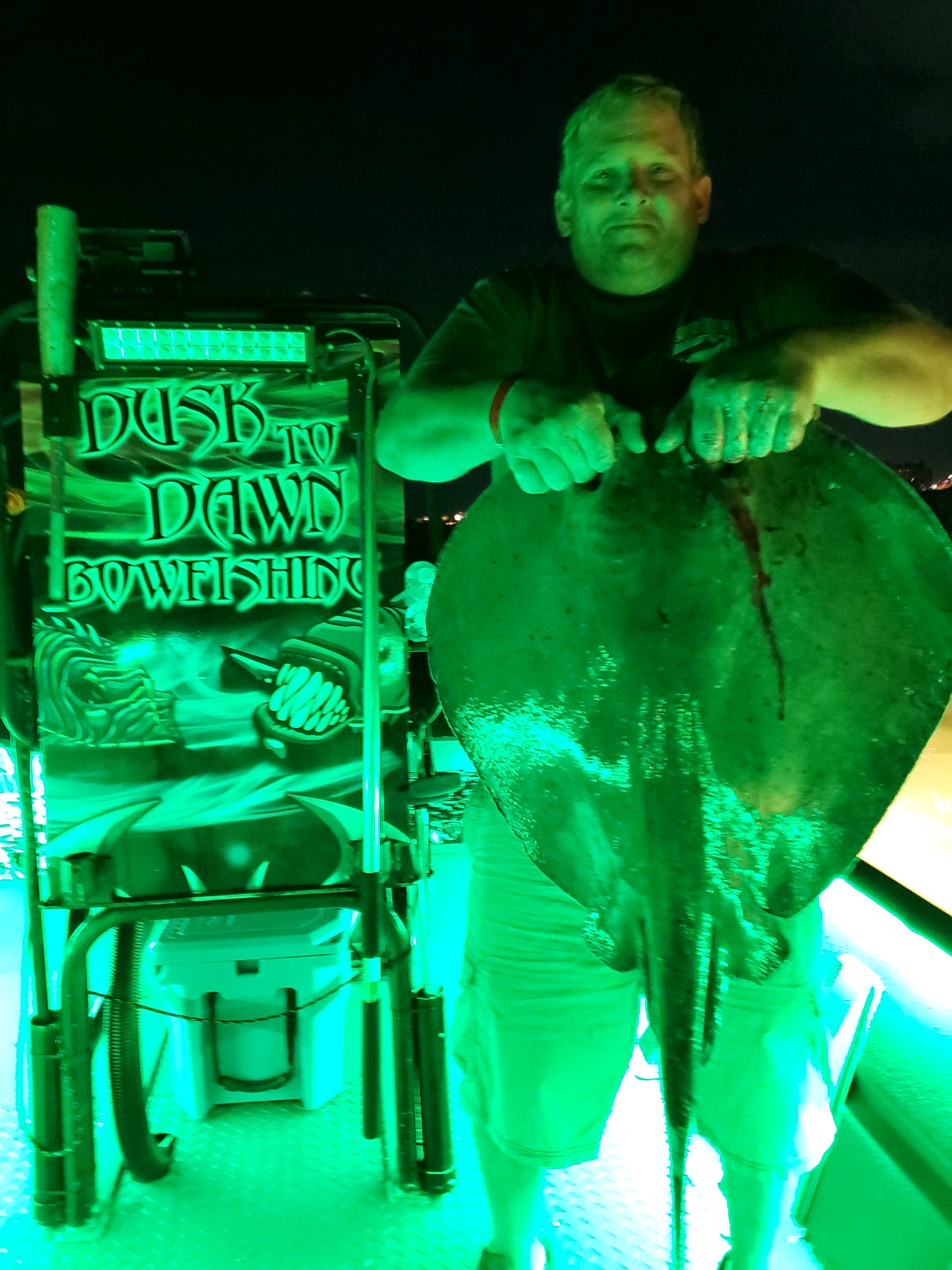 Captain Marc Spagnola of Dusk to Dawn Bowfishing continues his insomniac ways and continues to put shooters on terrific action for southern rays at night.