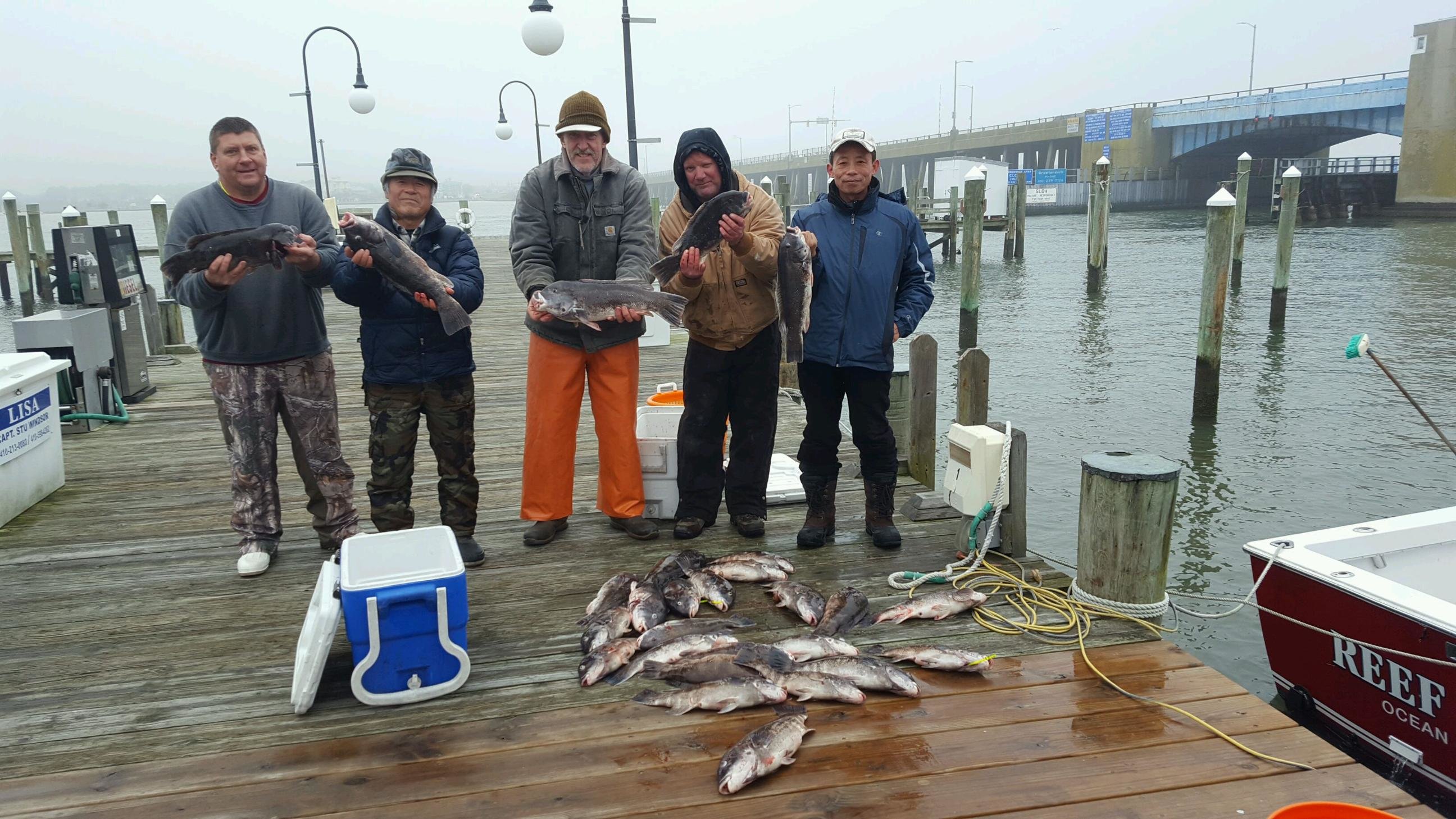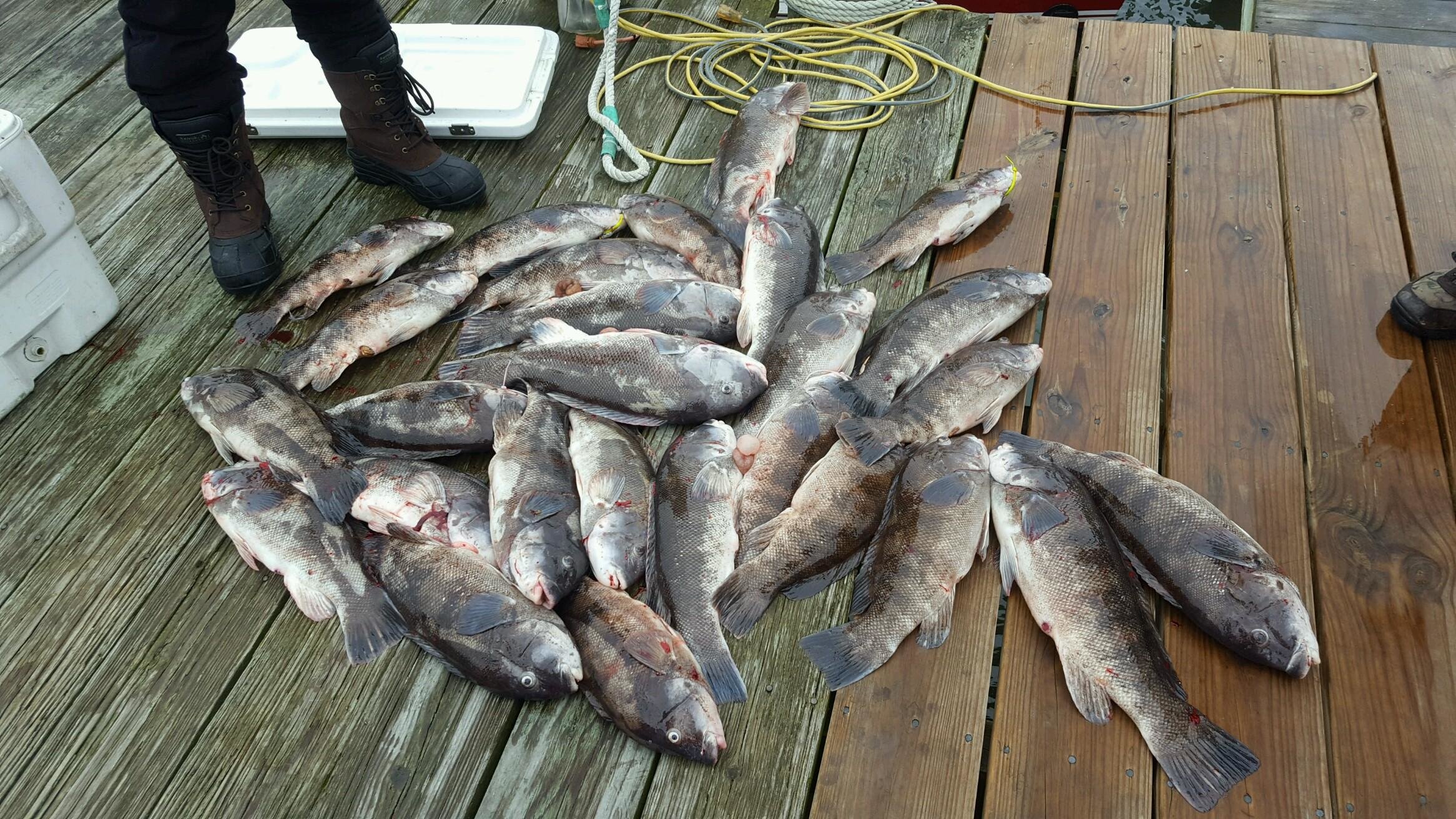 It was a tad foggy and overcast today, but overall a nice day for January. The temperatures climbed close to 50 in most spots today and the wind was light for the second day in a row. During a “go fishing when you can” time of year we’ll take any good weather we can get and today was pretty nice. The only species that is heavily targeted this time of year is the tautog, or blackfish, and anglers were out on the wrecks and reefs today trying to entice a bite.
