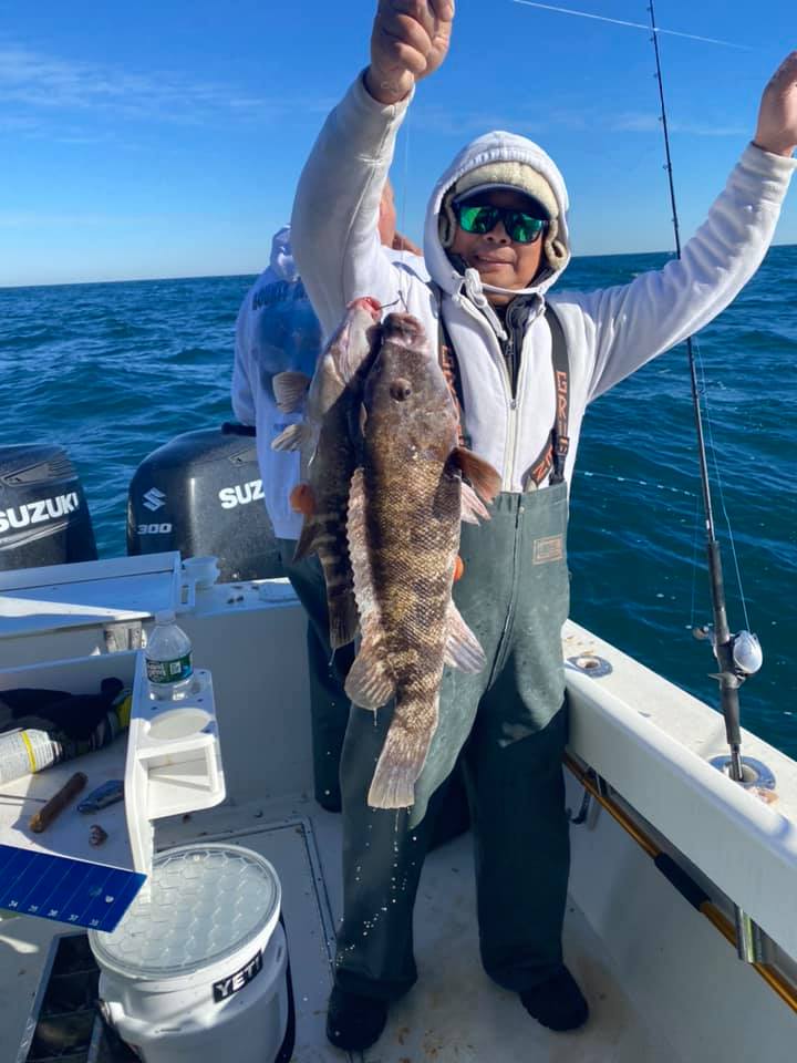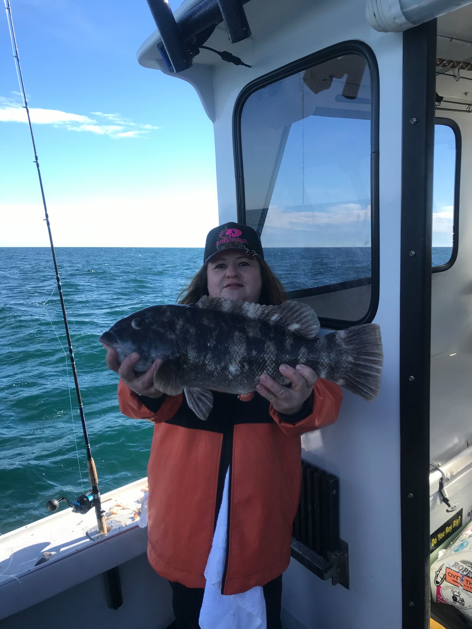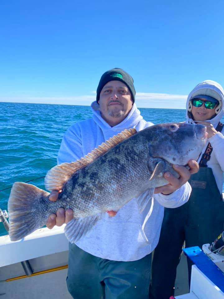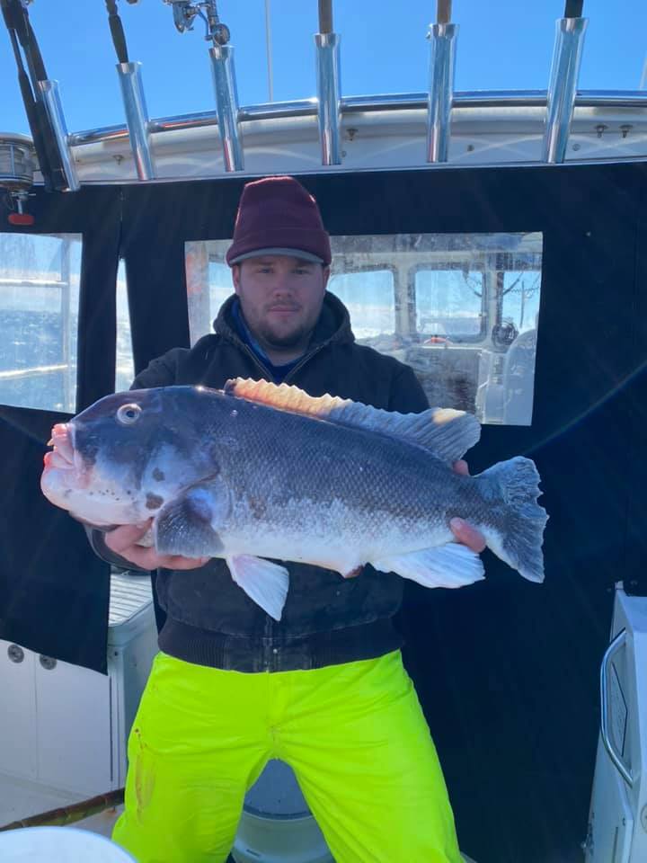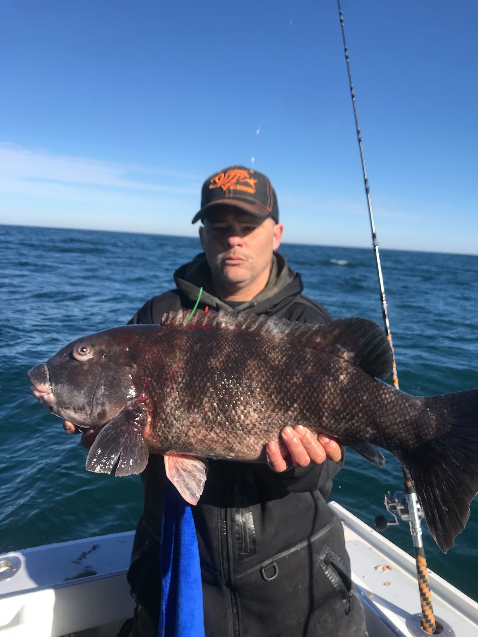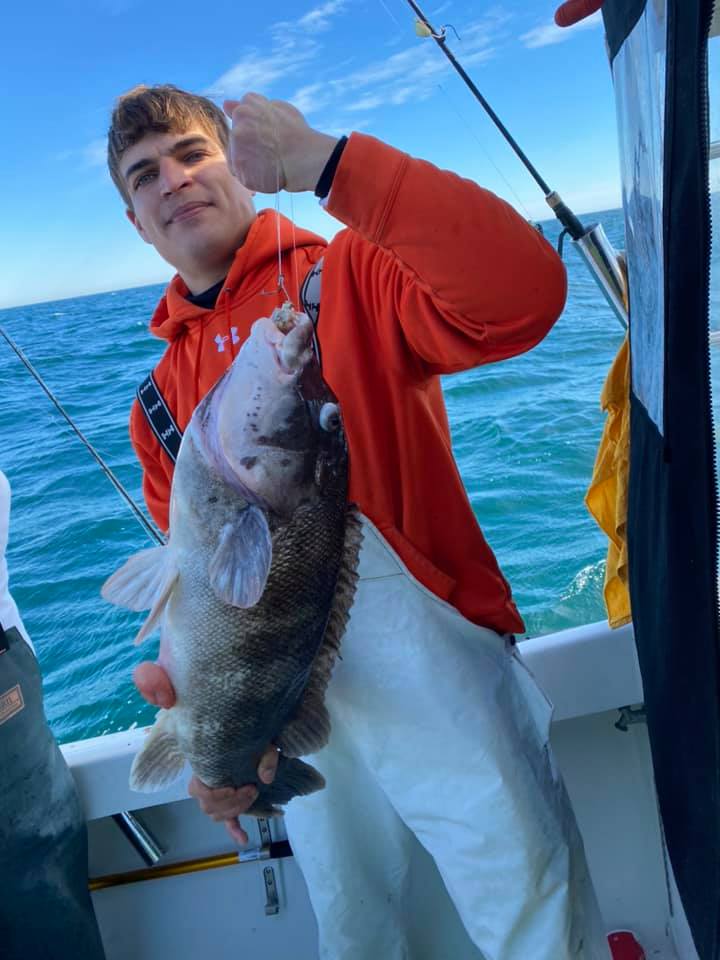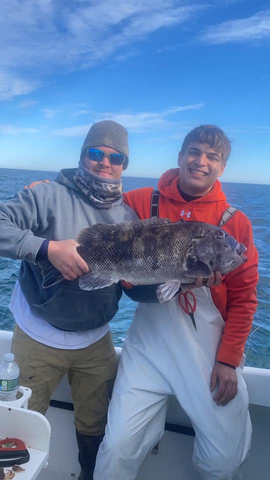It was such a nice day that I thought that I may get a fishing report, but I didn’t think that I’d get a text that said, “stupid good report coming.” I did however get that text and when I saw the report I had to agree that it was pretty “stupid.” Captain Chase Eberle and his crew had some awesome tautog fishing today after heading off a little deeper to find some fish after almost two weeks of being tied to the dock. It was worth the trip for Captain Chase and his crew as they had their limit of tog by 10:30 am with fish that included 7 over 10 pounds. The largest double digit fish was 18.3 pounds and all but one of the jumbos was released to swim another day. That is some stupid fishing.